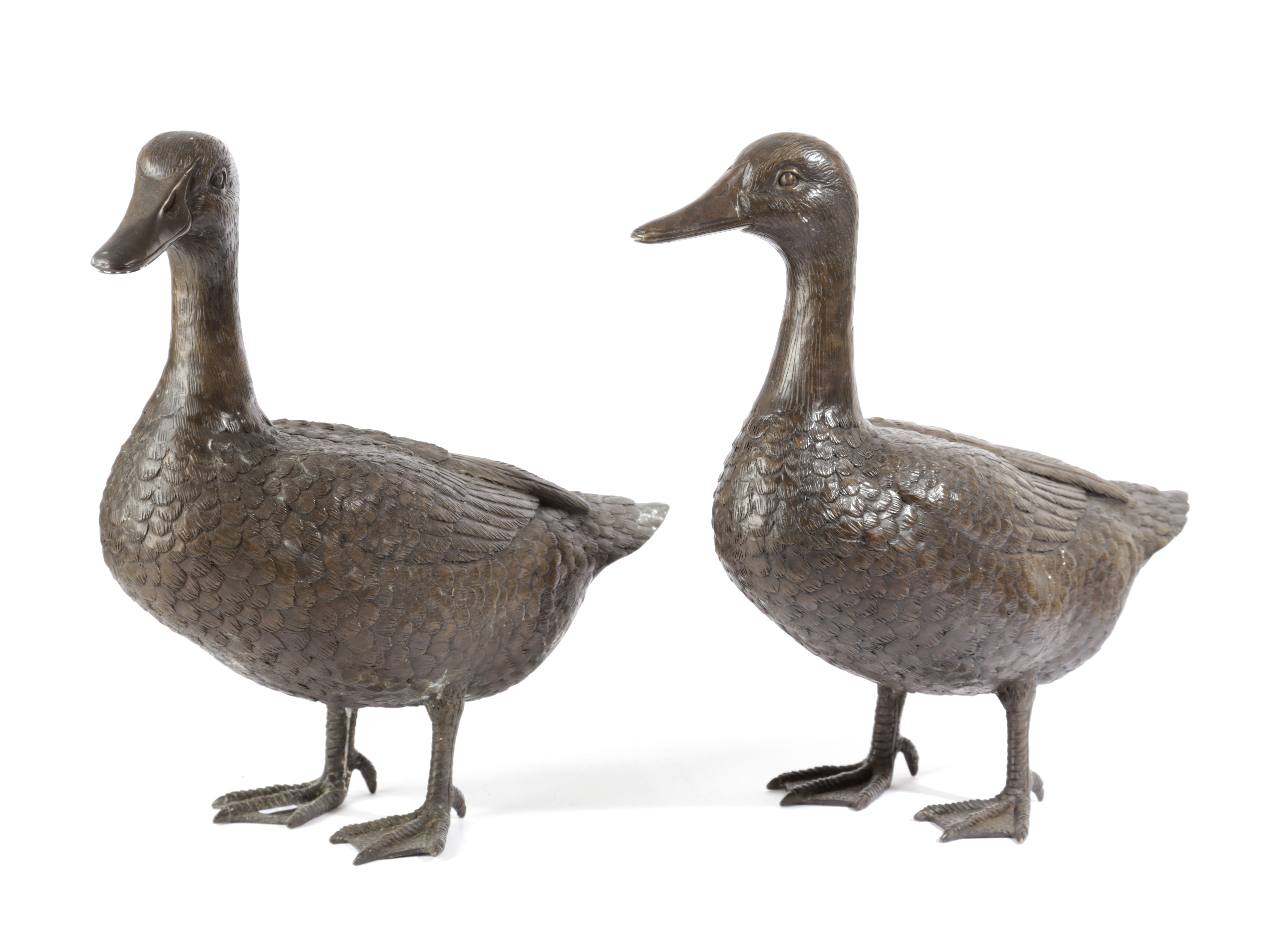 A PAIR OF FLOOR STANDING BRONZE GEESE