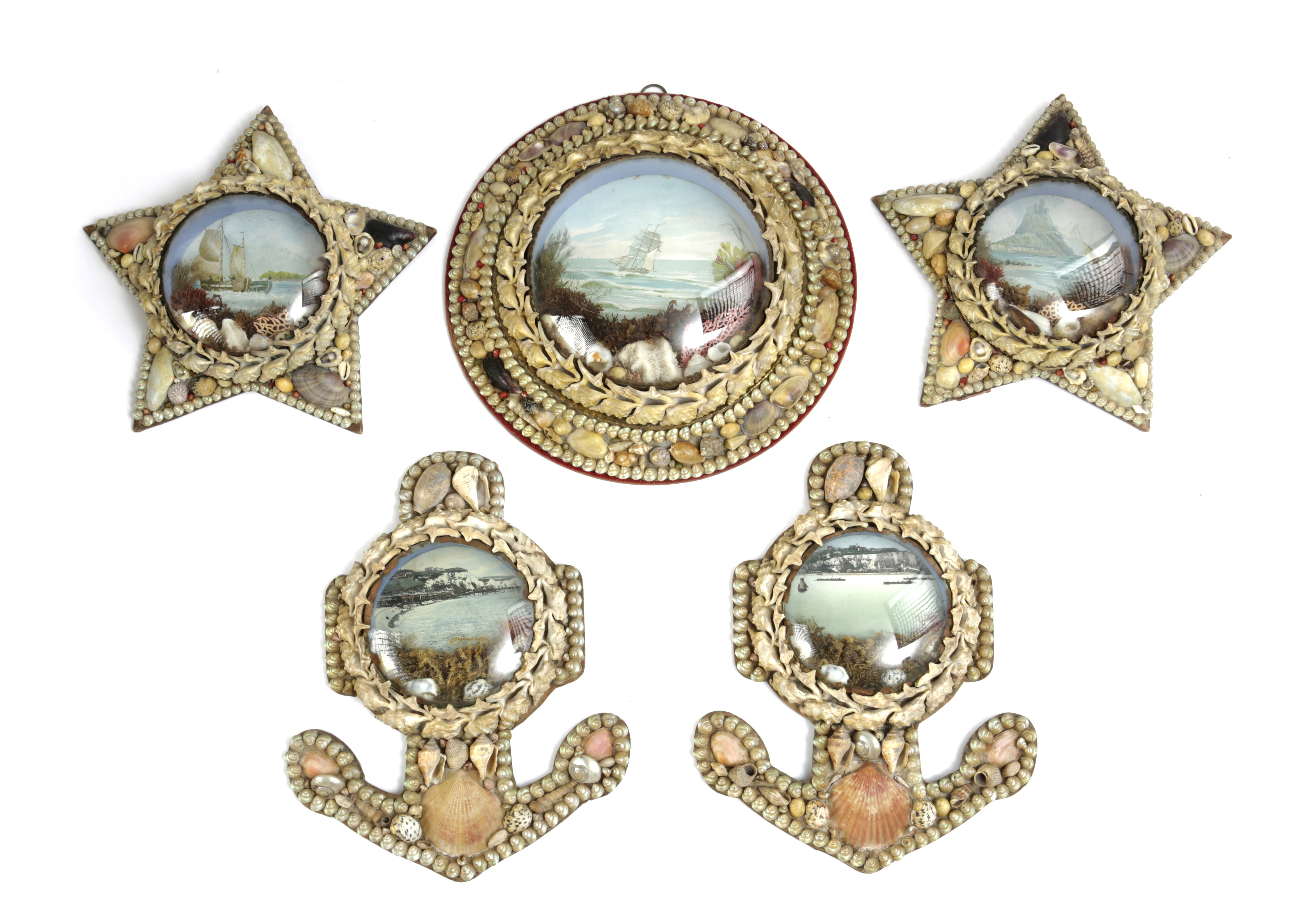 FIVE SAILOR'S SHELLWORK LOVE TOKEN DIORAMAS