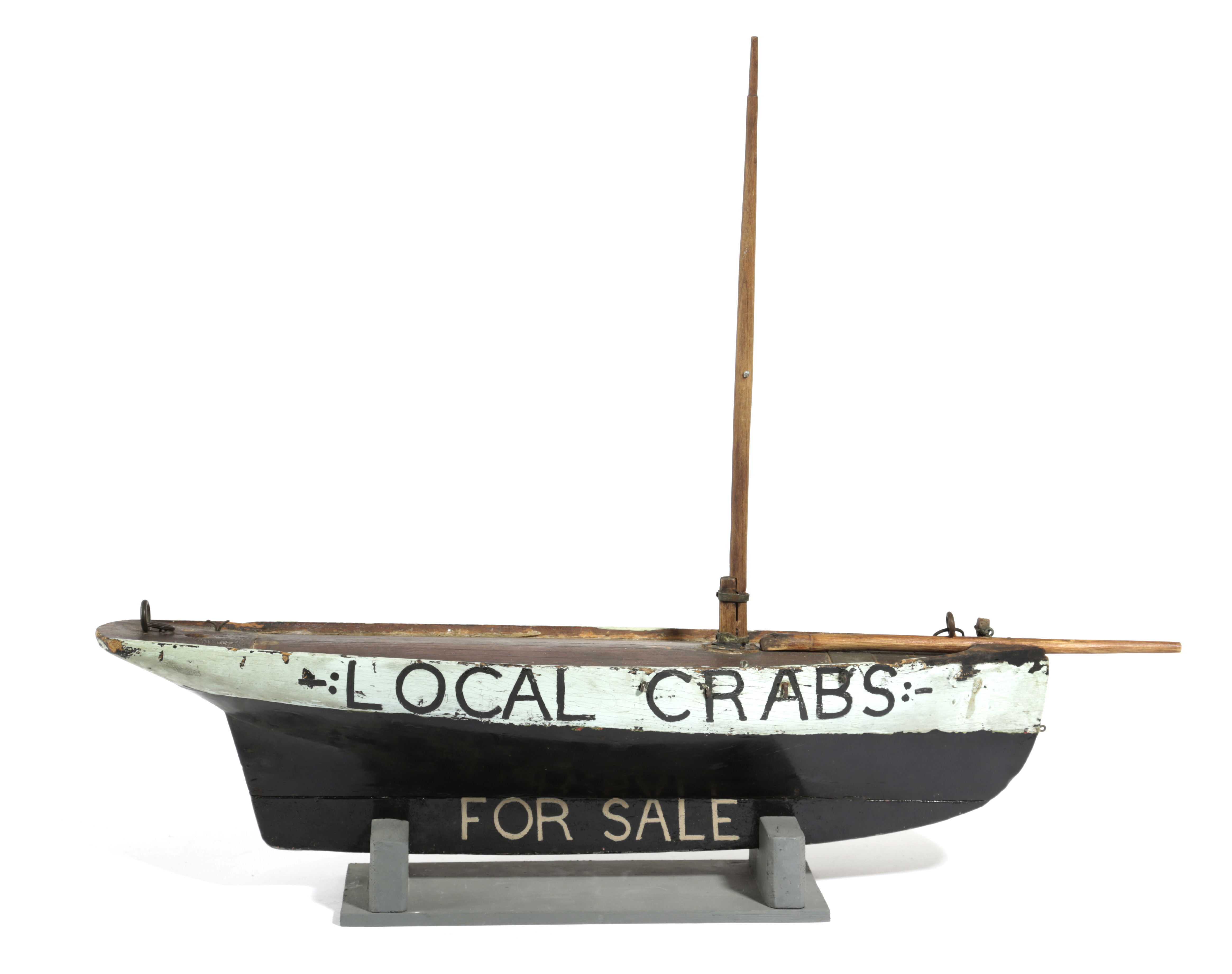A FOLK ART PAINTED WOOD MODEL CRAB BOAT SHOP SIGN