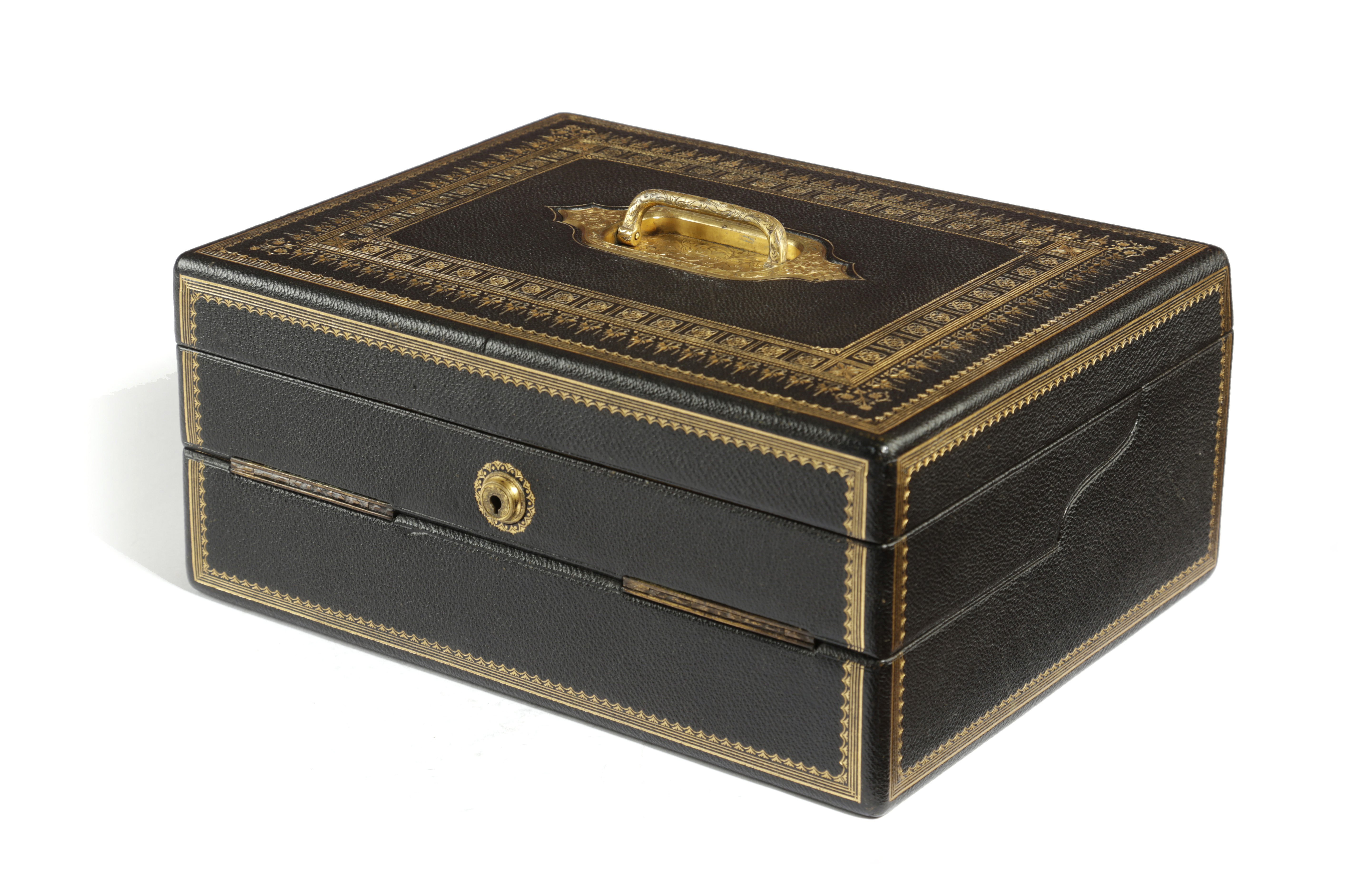 A VICTORIAN SCOTTISH GILT TOOLED GREEN LEATHER WRITING SLOPE