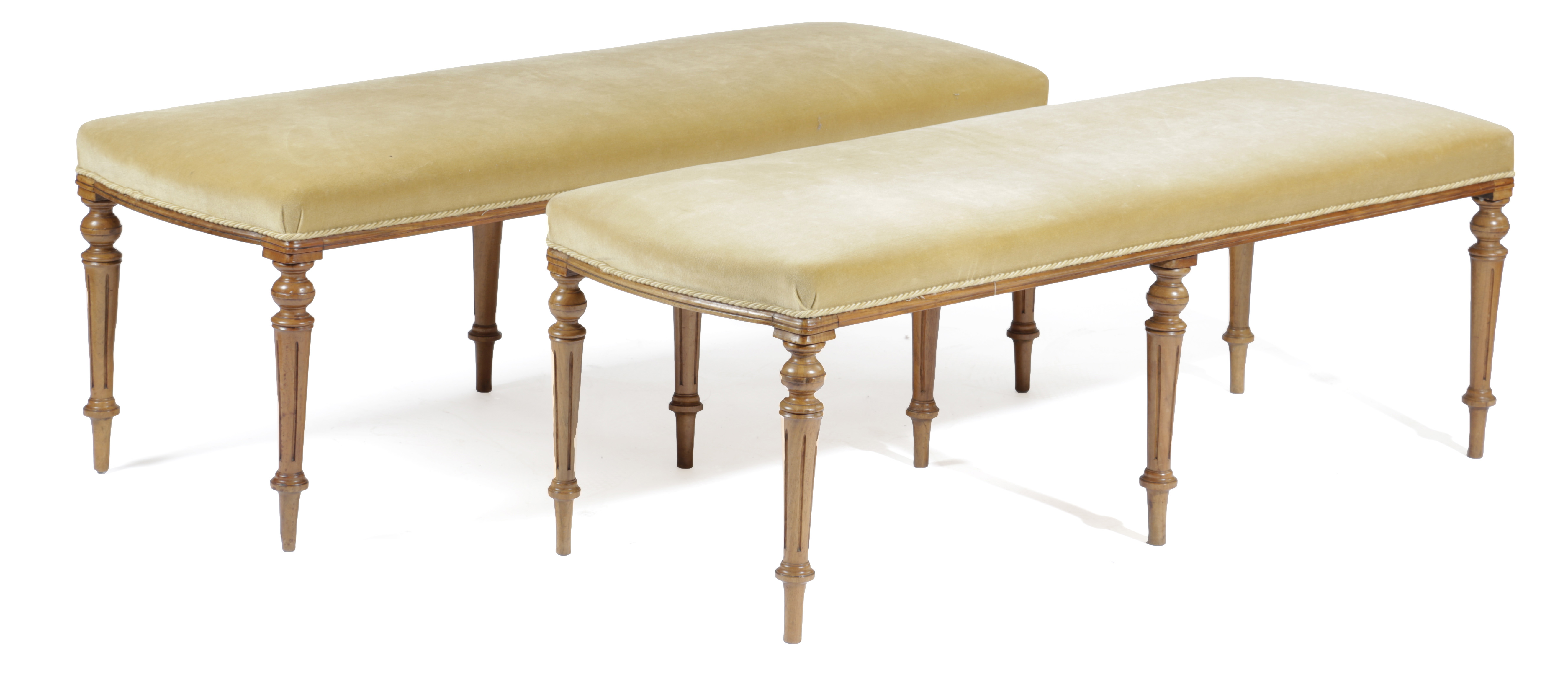 A PAIR OF WALNUT LONG STOOLS