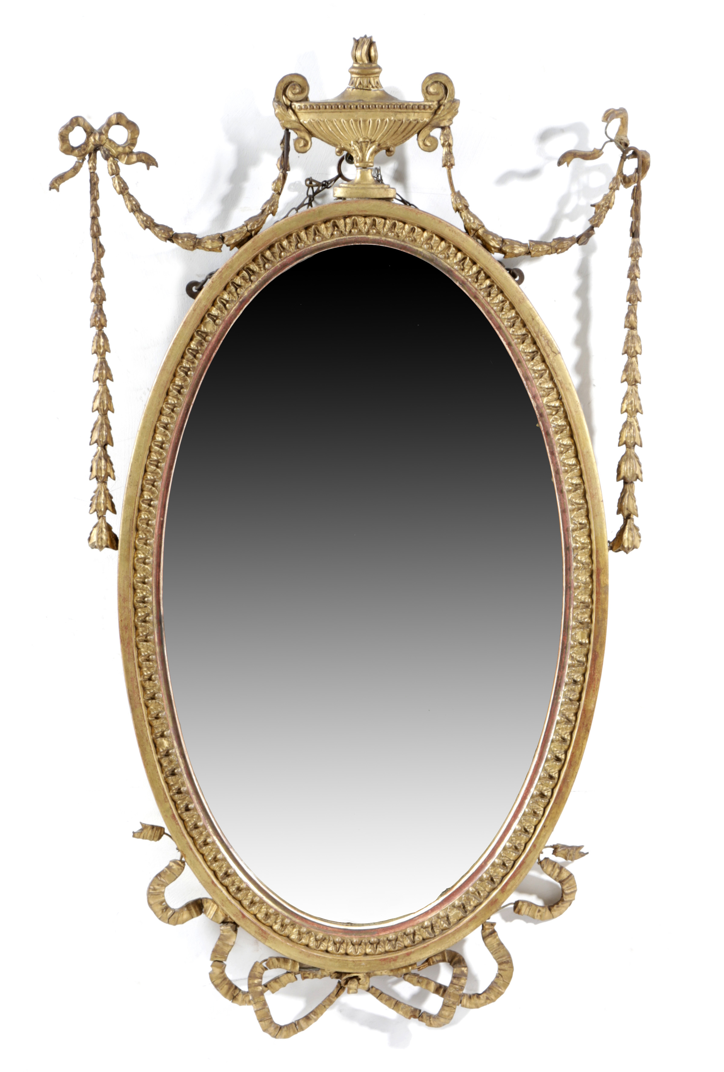 A LATE VICTORIAN GILTWOOD AND COMPOSITION OVAL WALL MIRROR