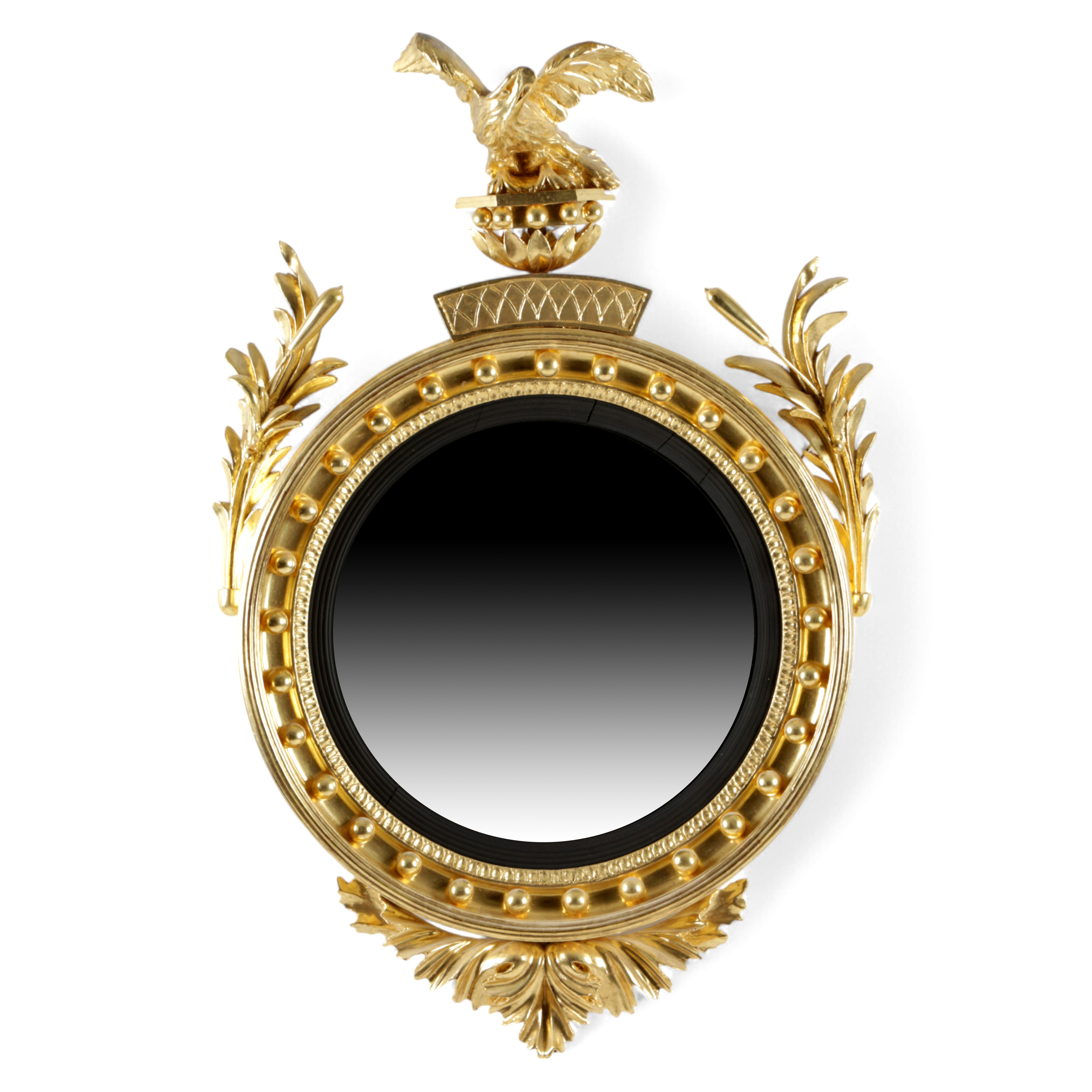 A REGENCY GILTWOOD CONVEX WALL MIRROR