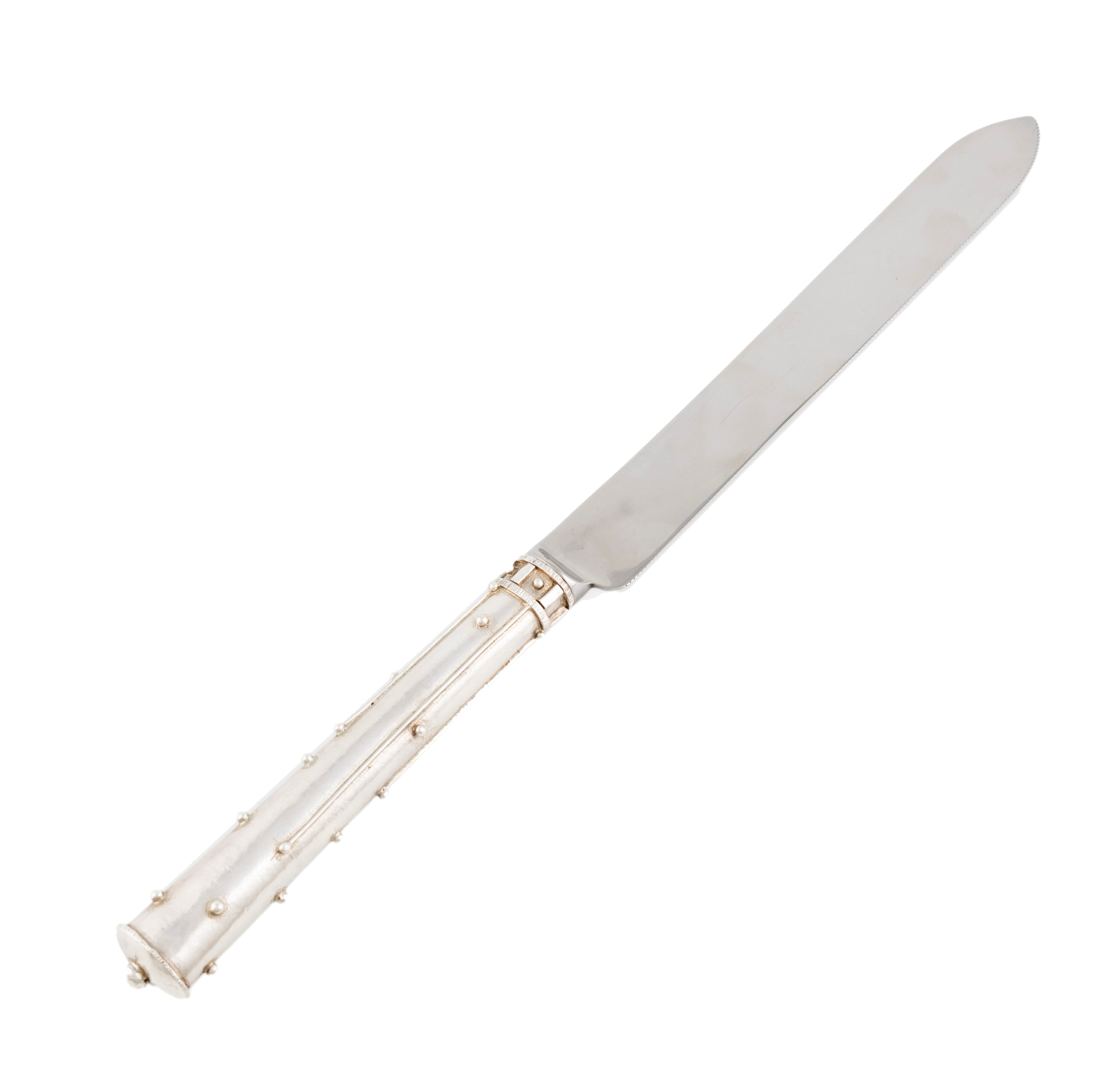 By Michael Allen Bolton, a modern silver-handled bread knife,