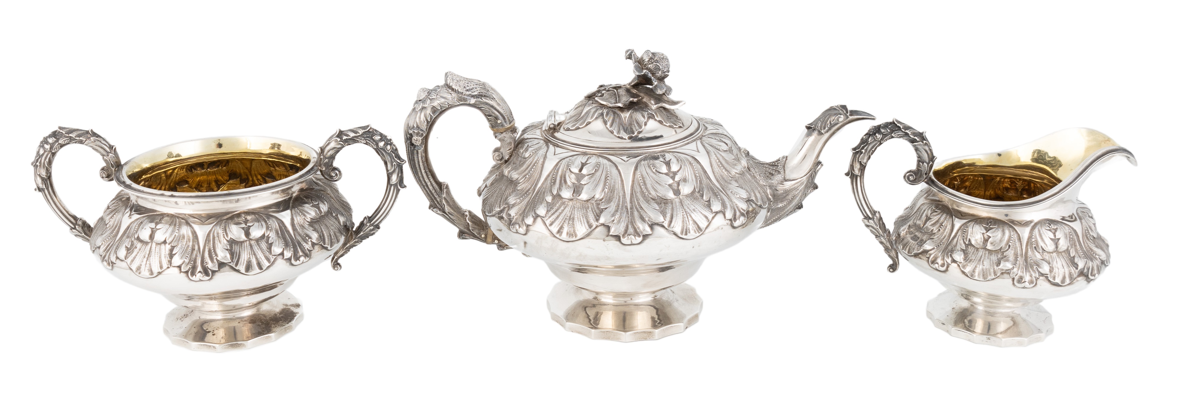 λ A three-piece George IV silver tea set,
