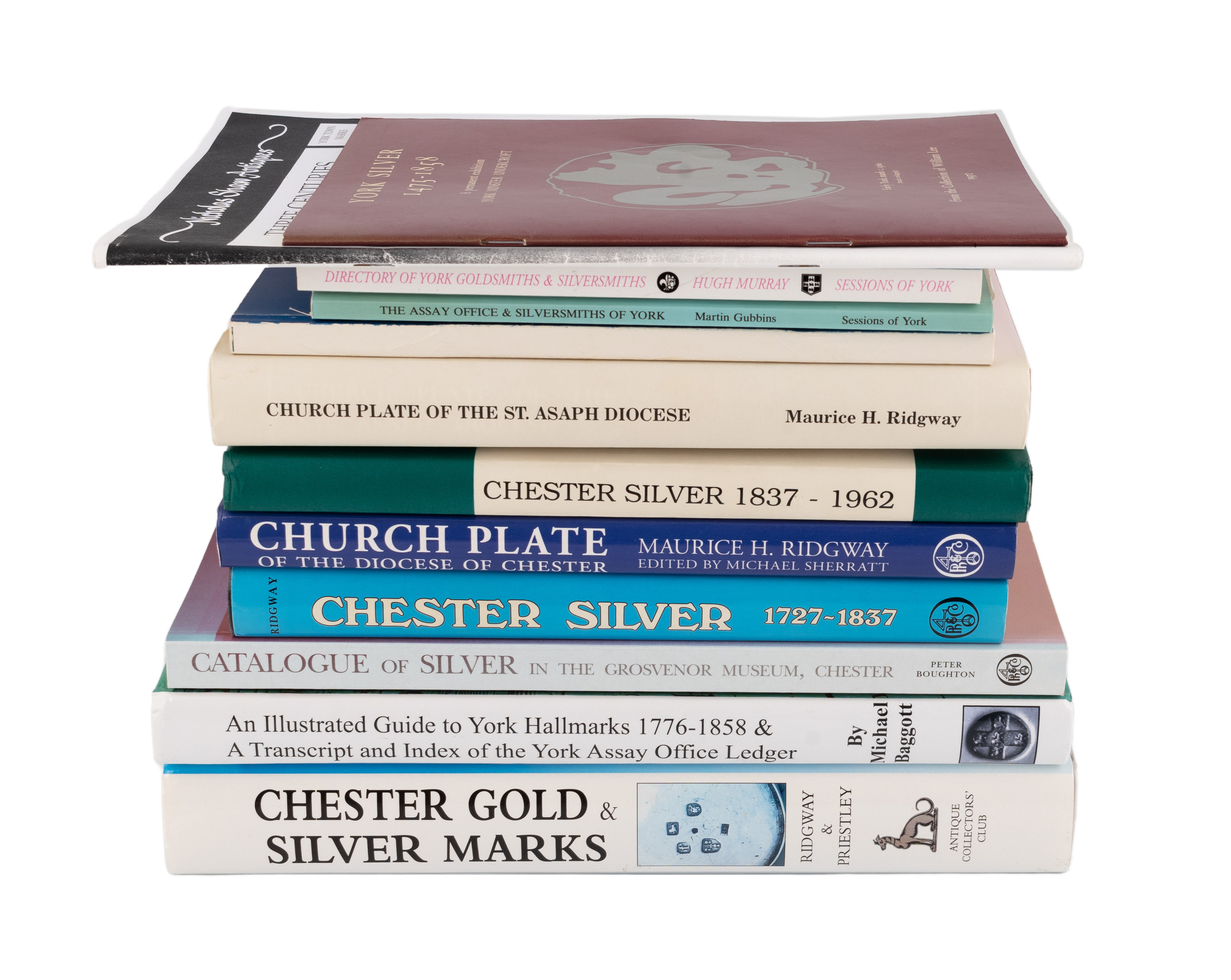 including: An Illustrated Guide to York Hallmarks 1776-1858, by Baggott M., Chester Gold and Silver Marks, Church Plate of Chester and other volumes. (qty)