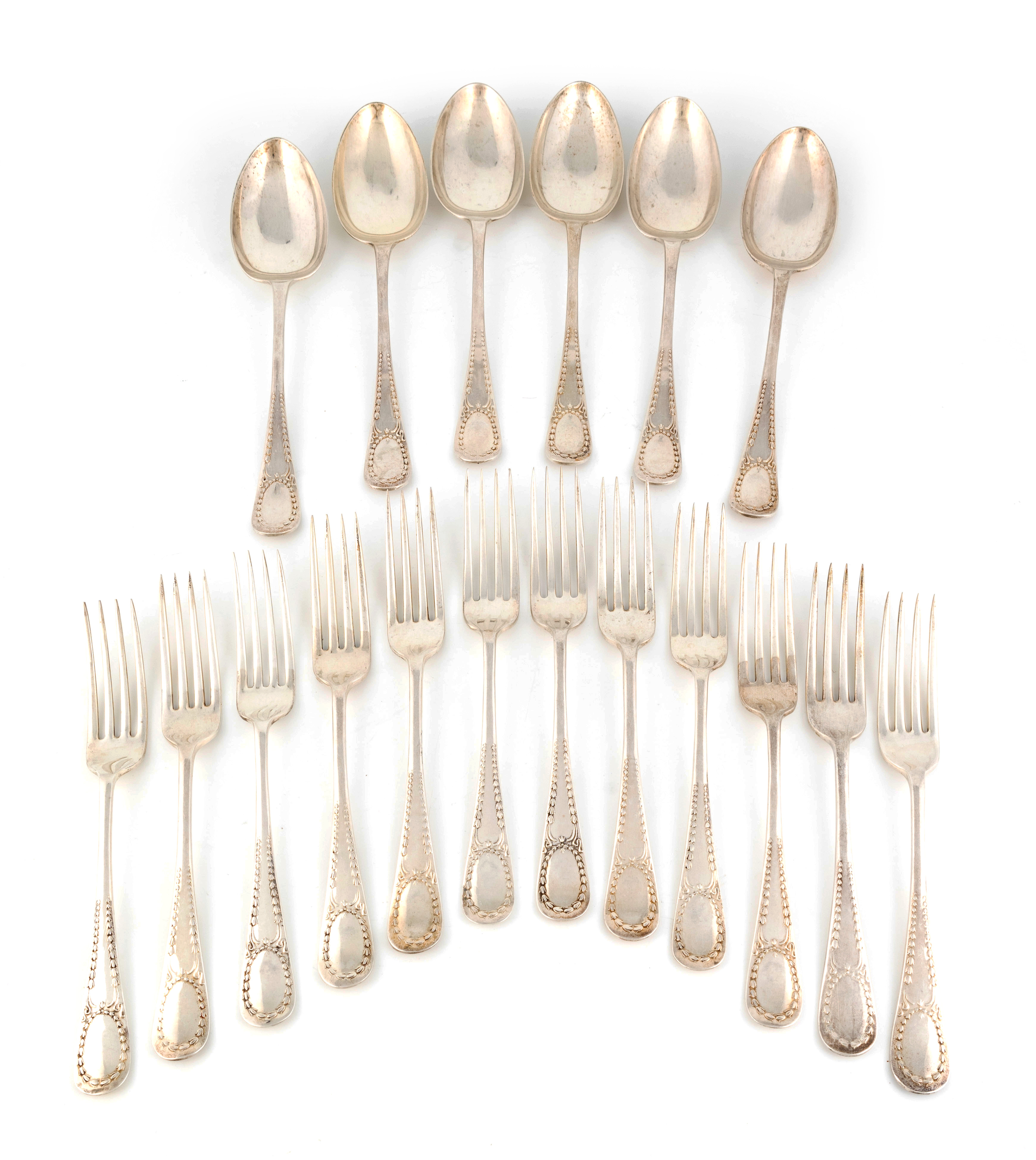 with floral garland decoration to the terminal, plus six tablespoons of the same pattern, total approx. weight 49.2oz. (18)