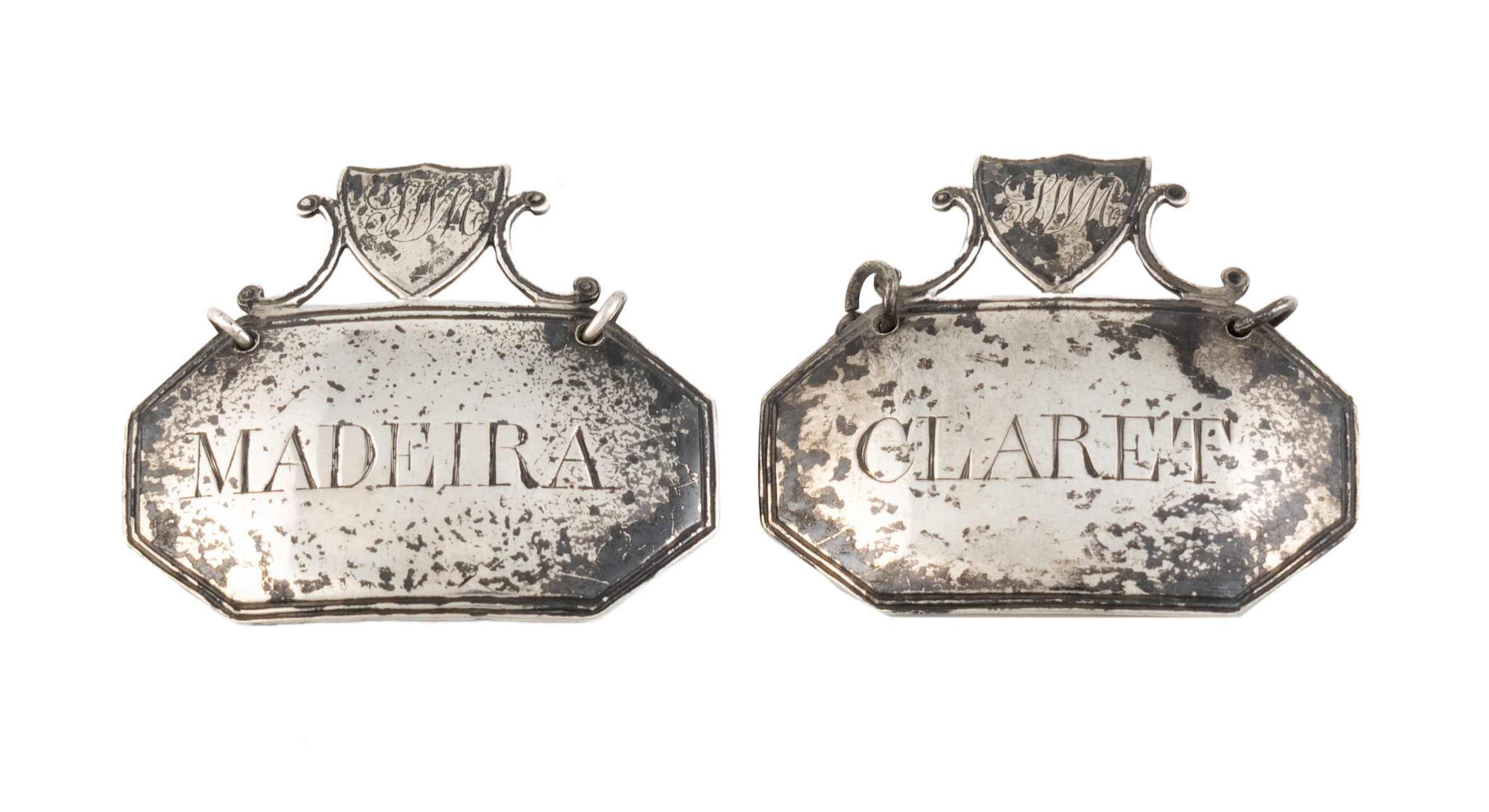 A pair of George III Scottish silver wine labels,