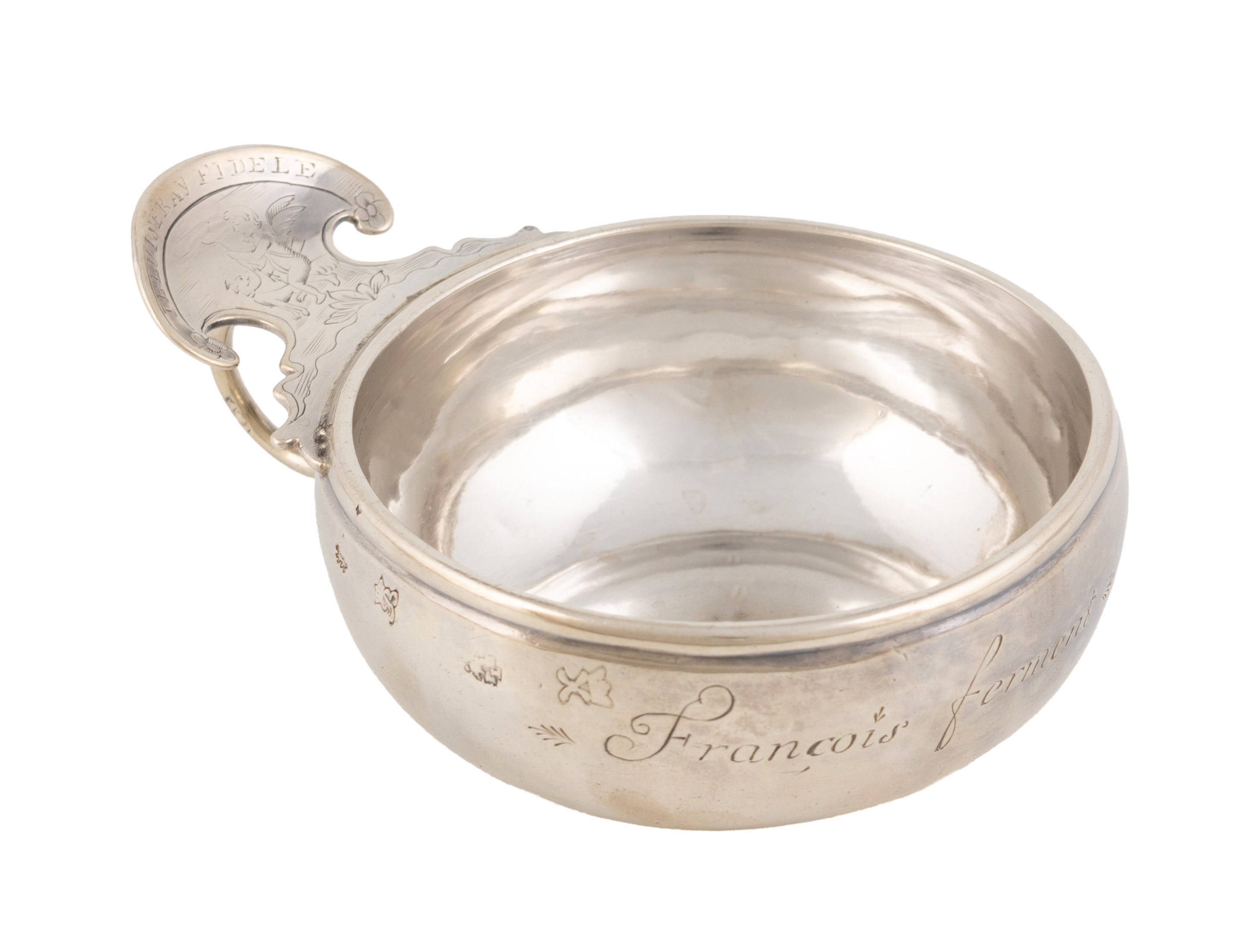 A Louis XVI French provincial silver wine taster,