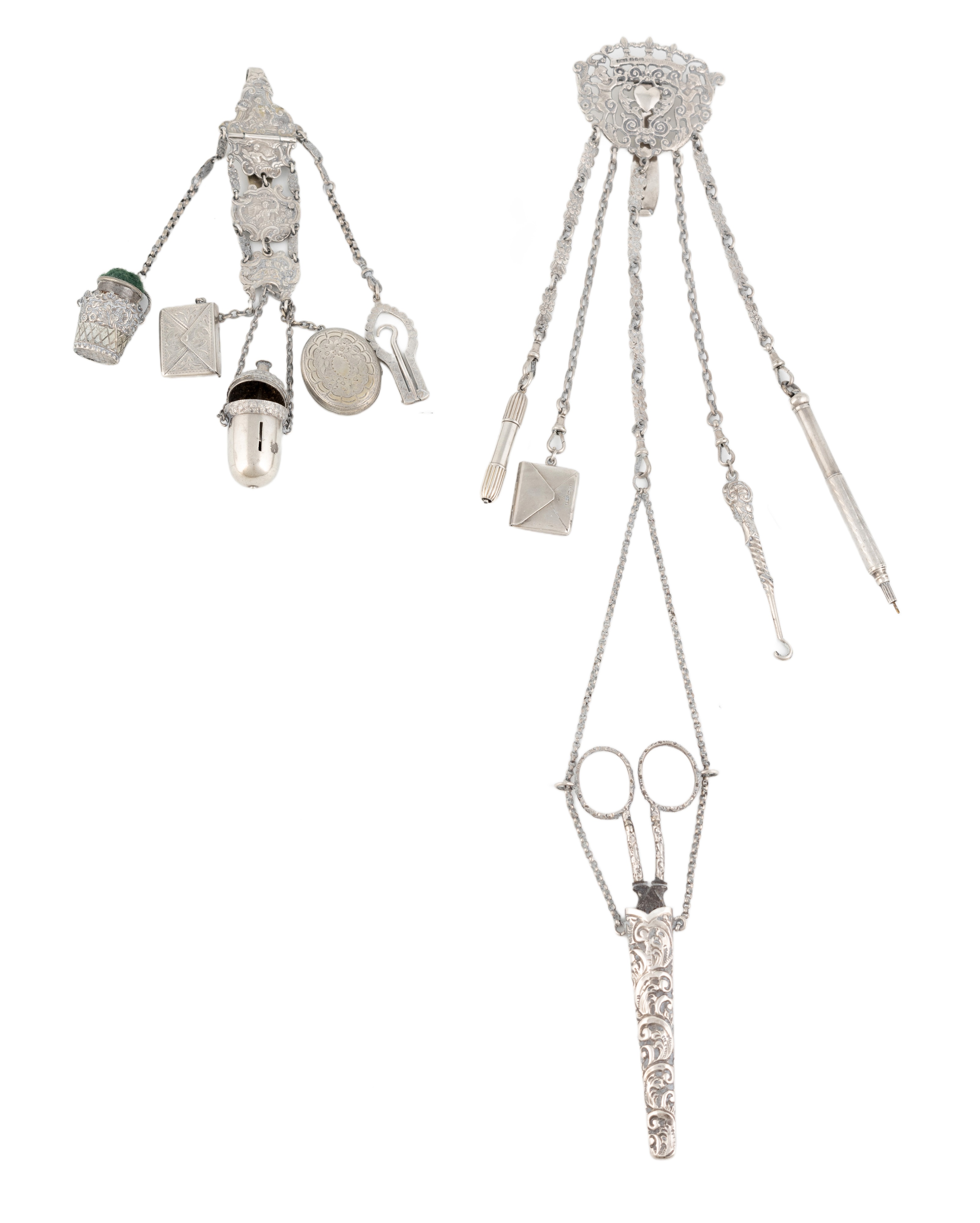 Two silver chatelaines,