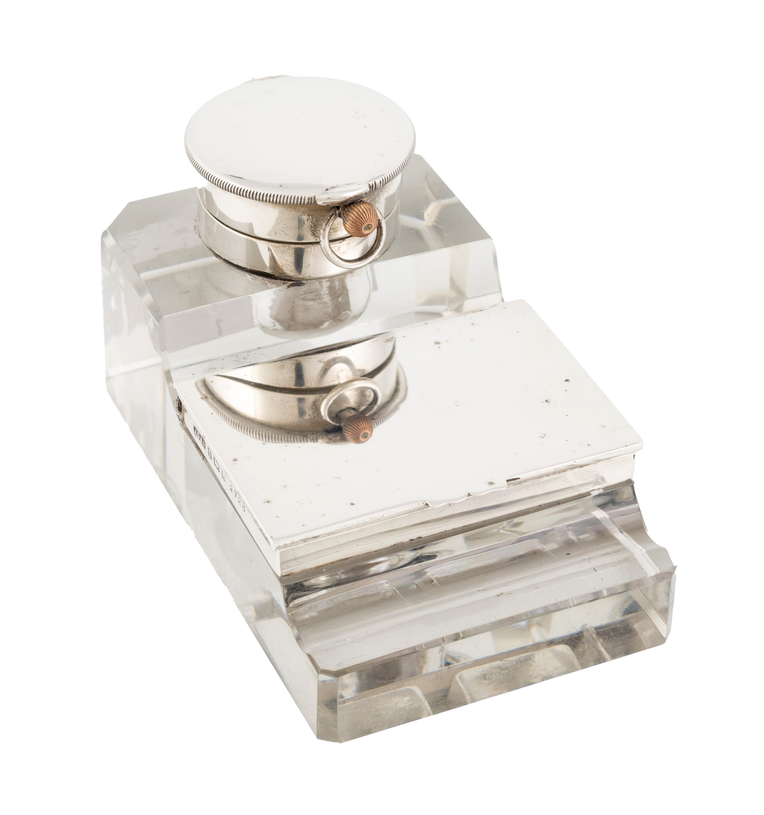 An Edwardian silver-mounted glass inkwell and stamp box,