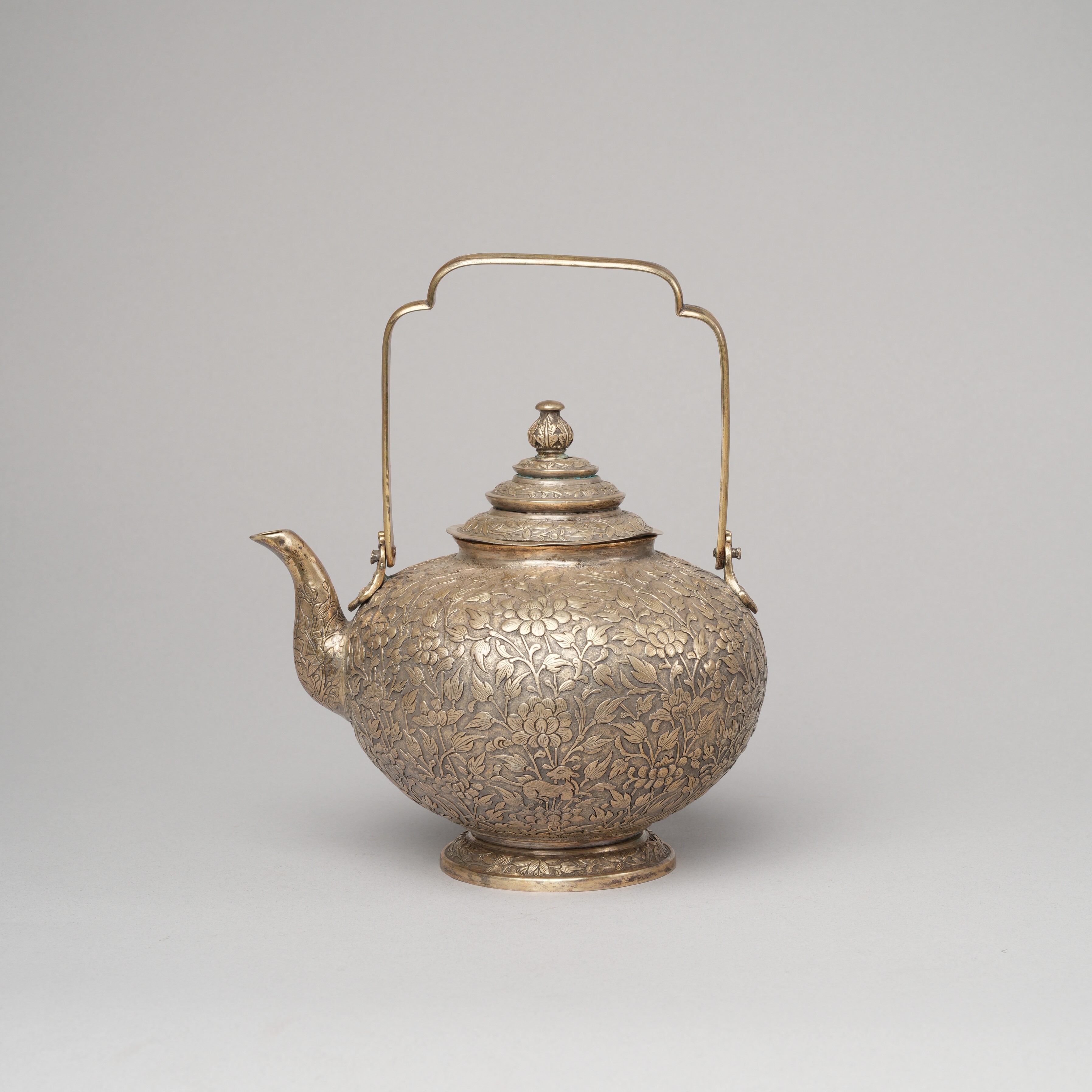 十九世紀 外銷東南亞及泰國銀鍍金花卉紋提樑茶壺