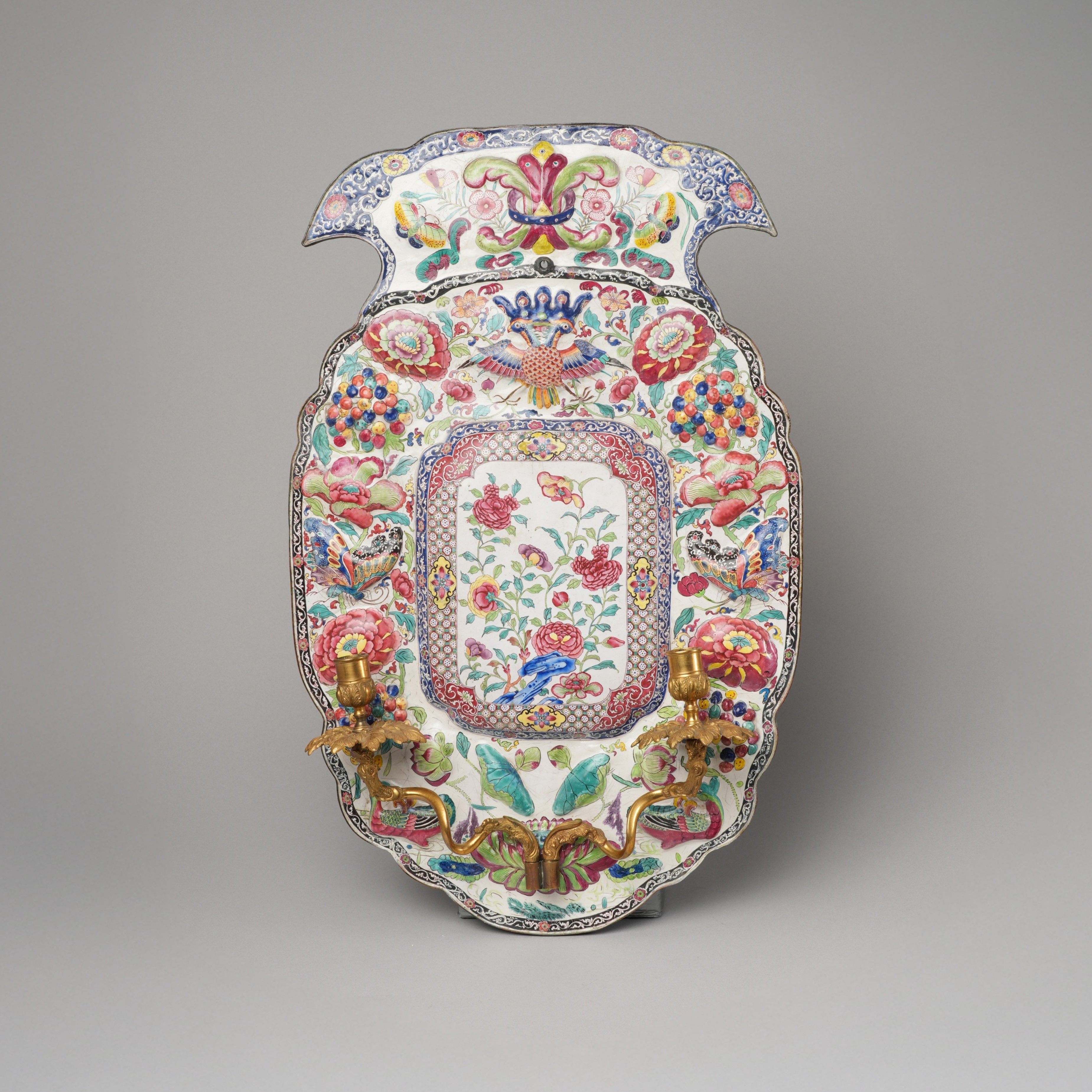 A LARGE CHINESE FAMILLE ROSE PAINTED-ENAMEL WALL SCONCE
