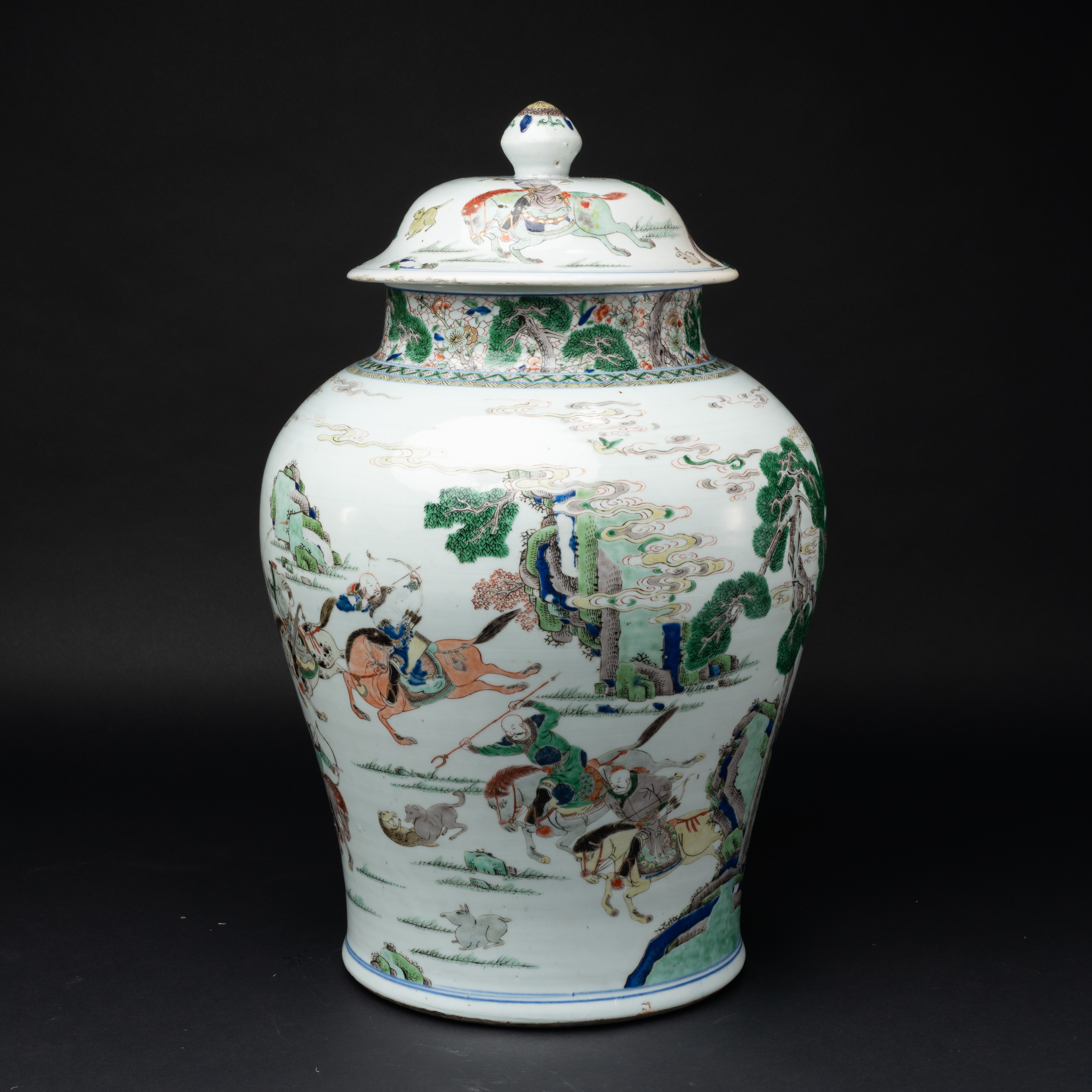 清康熙 五彩狩獵圖將軍罐