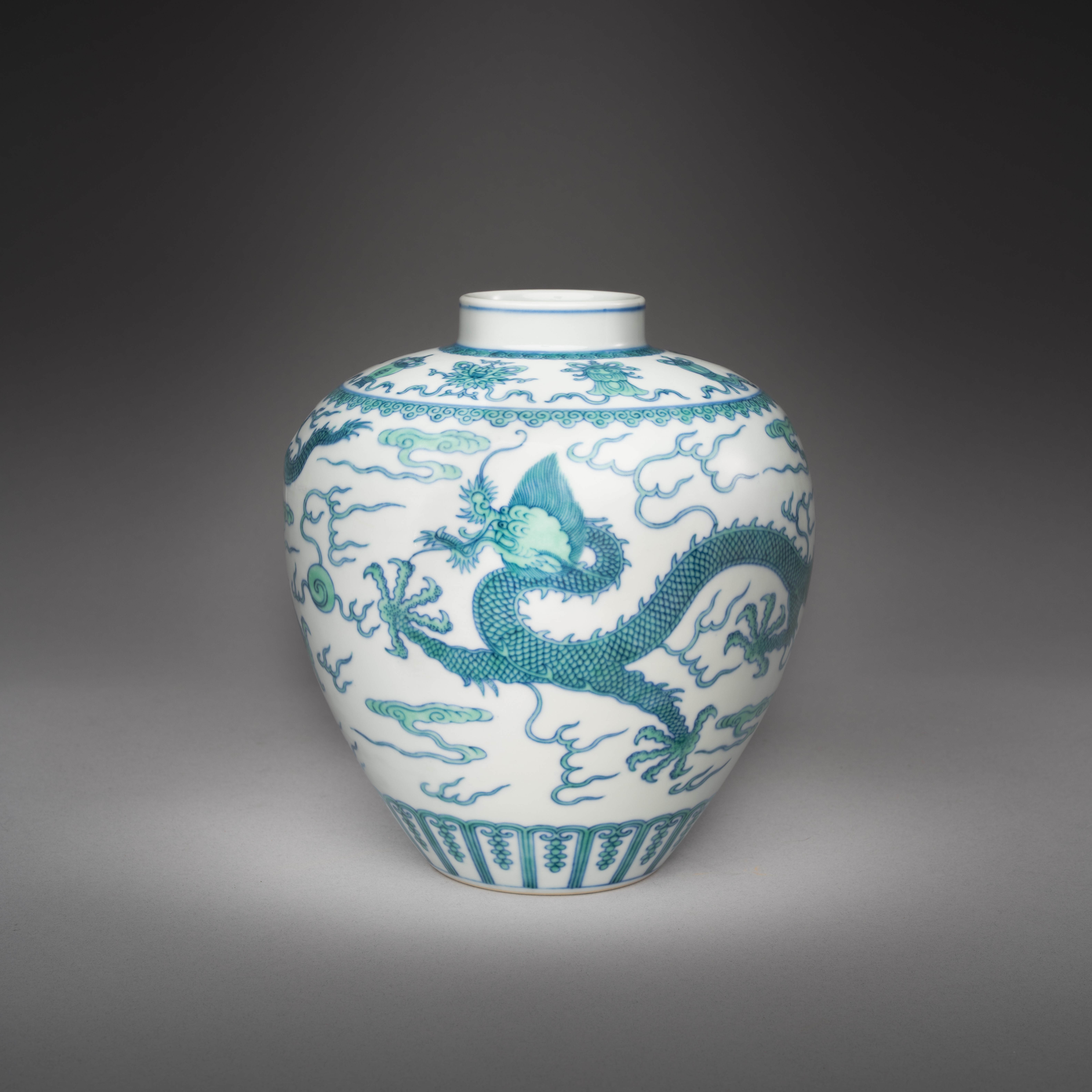 A CHINESE GREEN-ENAMELLED 'DRAGON' JAR
