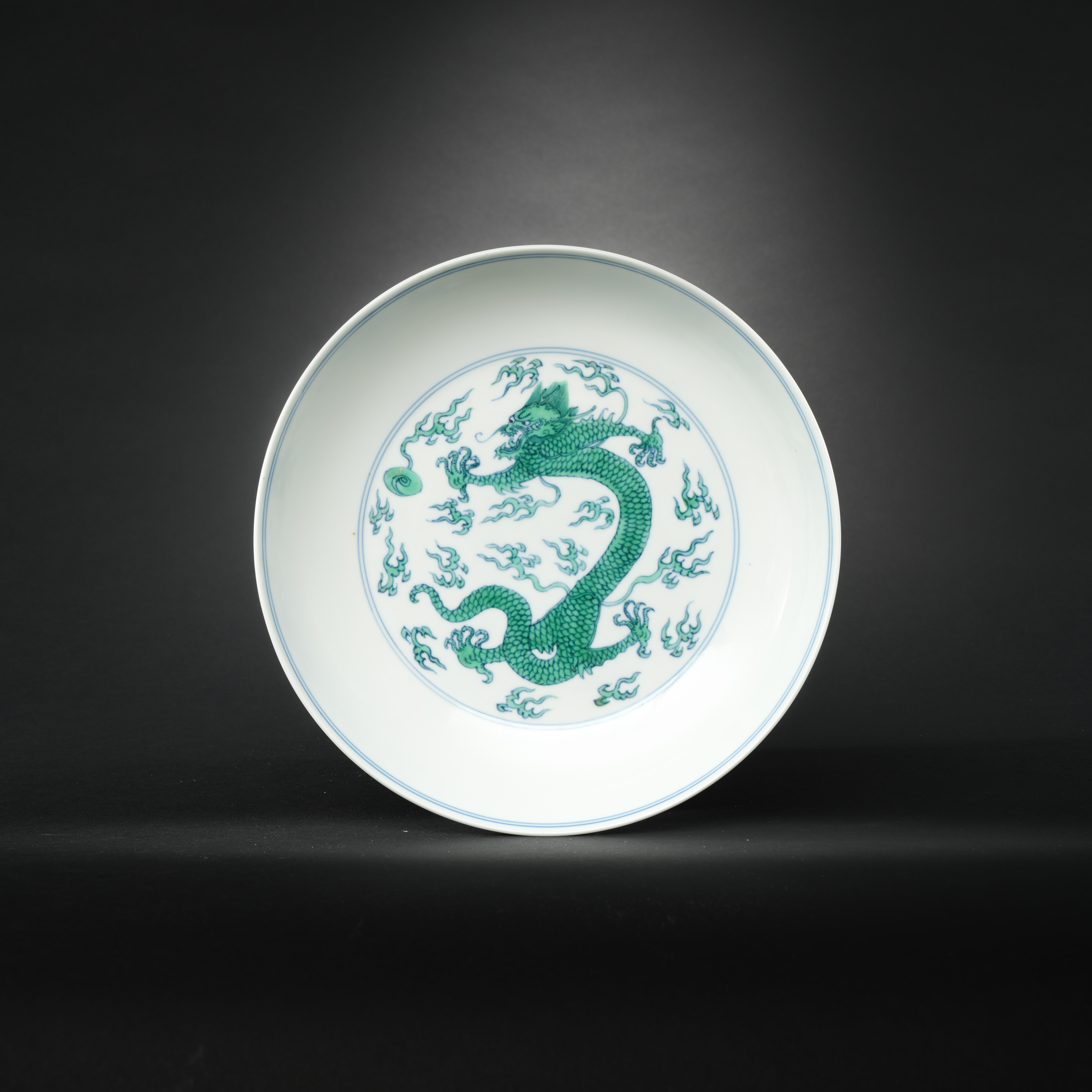 A RARE CHINESE GREEN-ENAMELLED 'DRAGON' DISH