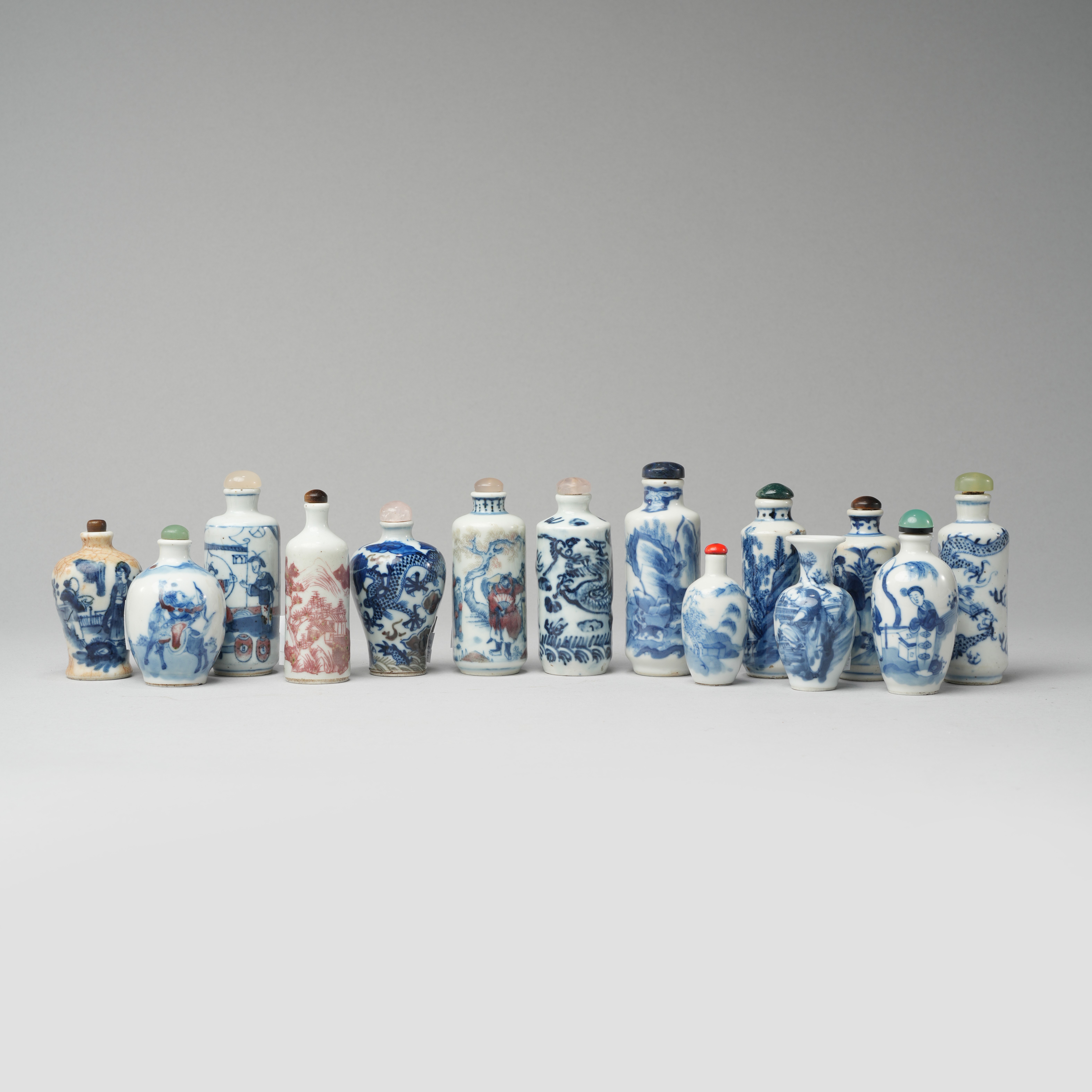 THIRTEEN CHINESE SNUFF BOTTLES AND A MINIATURE VASE