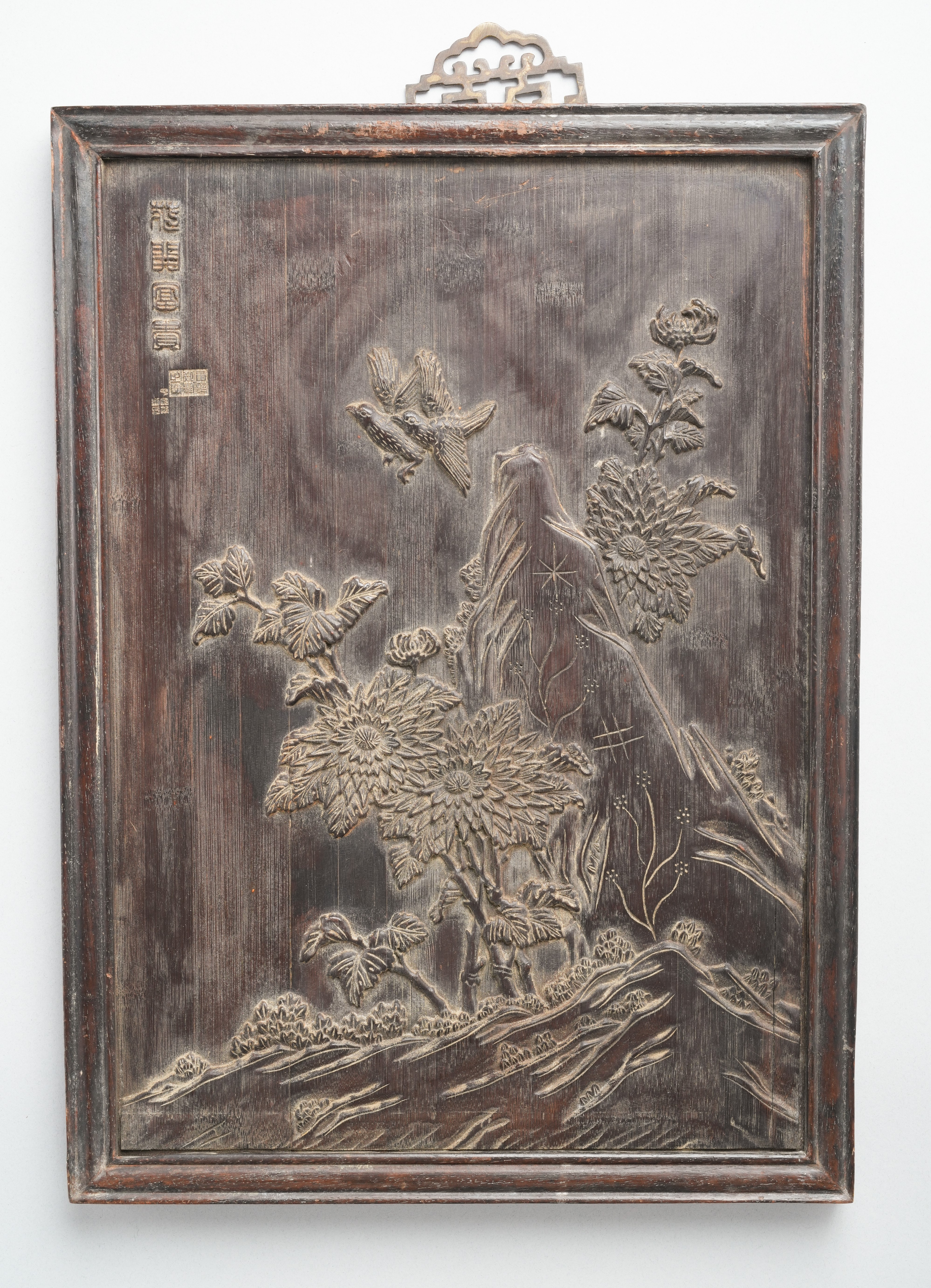A SET OF FOUR CHINESE CARVED WOOD 'FOUR GENTLEMEN' PANELS