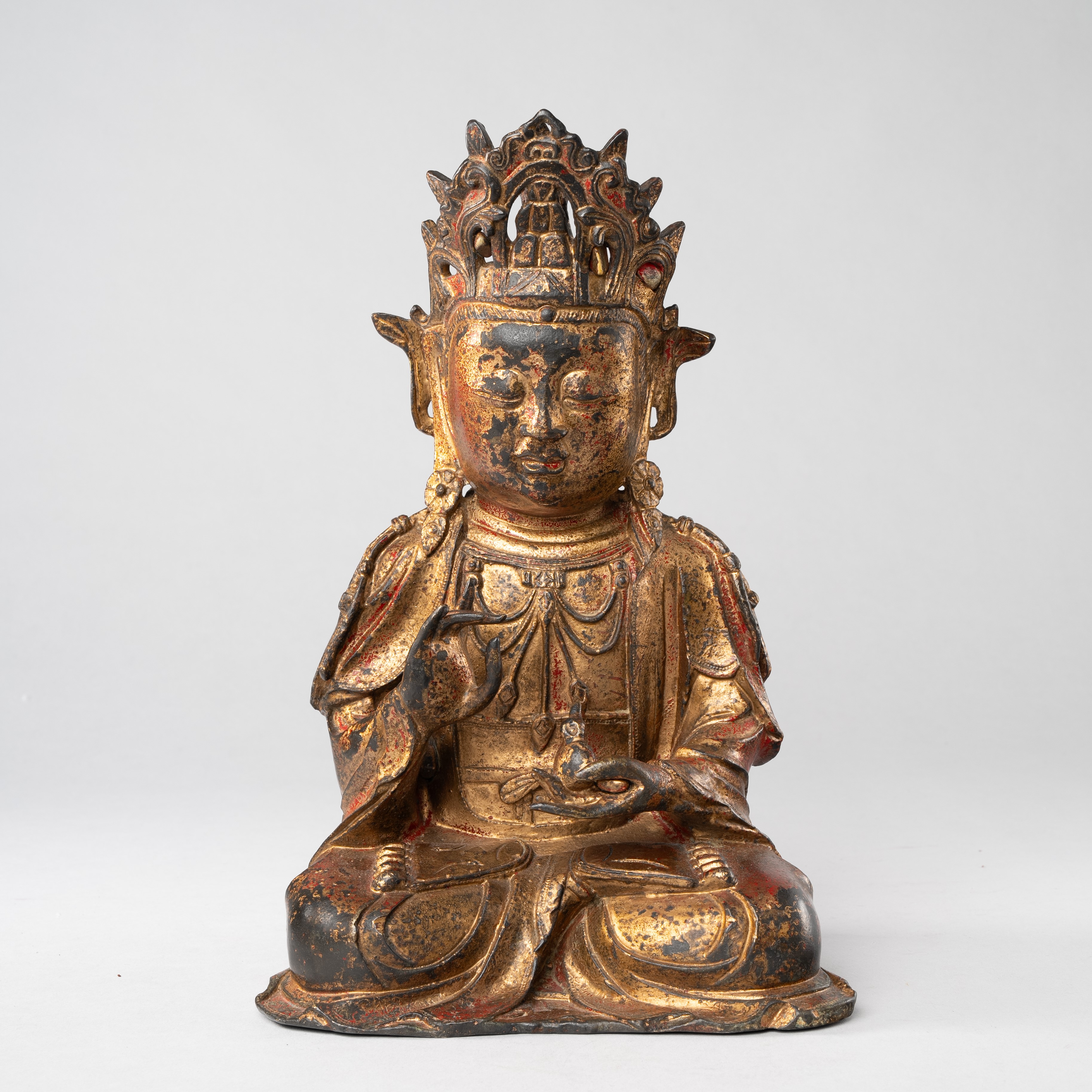 A CHINESE GILT AND LACQUERED BRONZE FIGURE OF GUANYIN