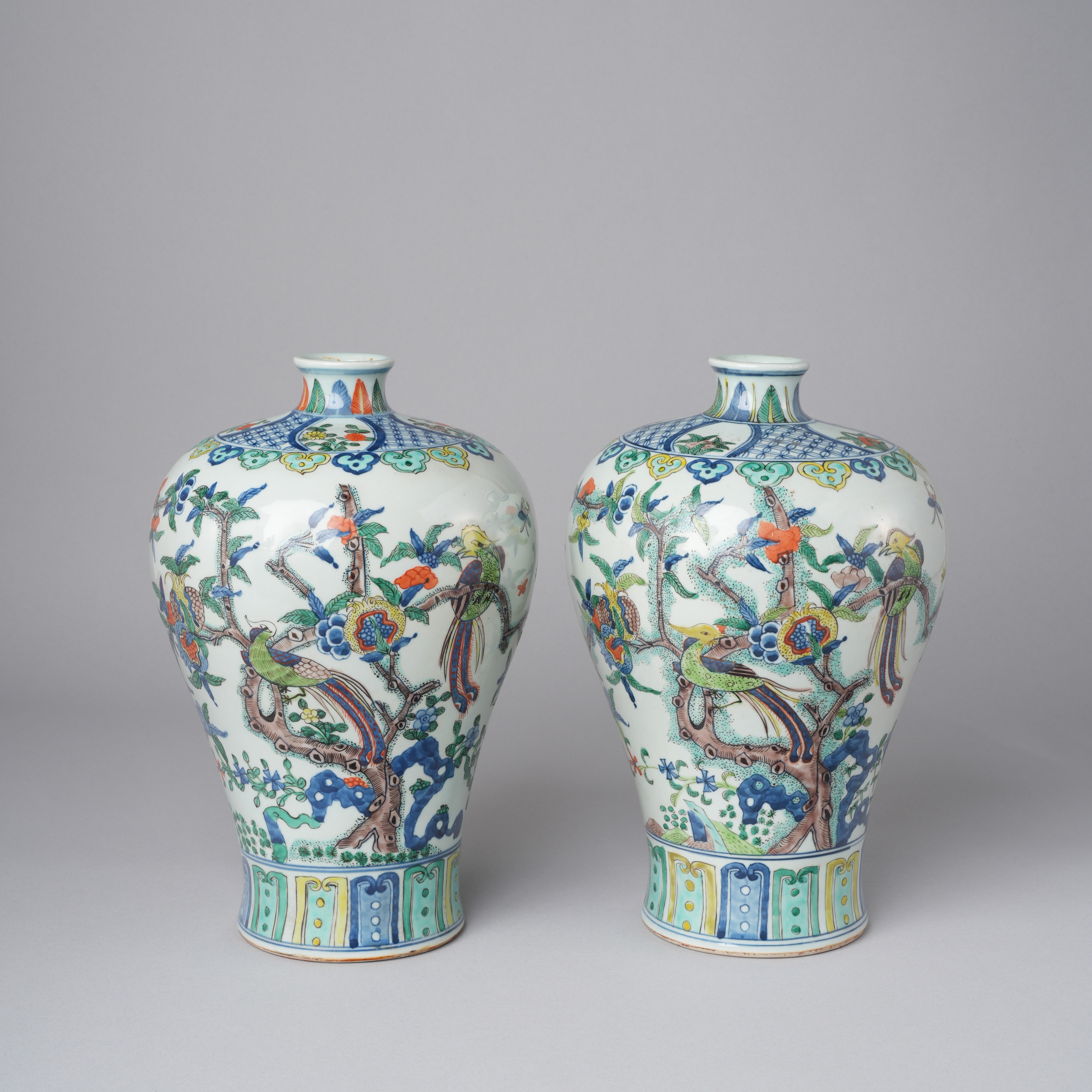 A PAIR OF CHINESE DOUCAI VASES, MEIPING