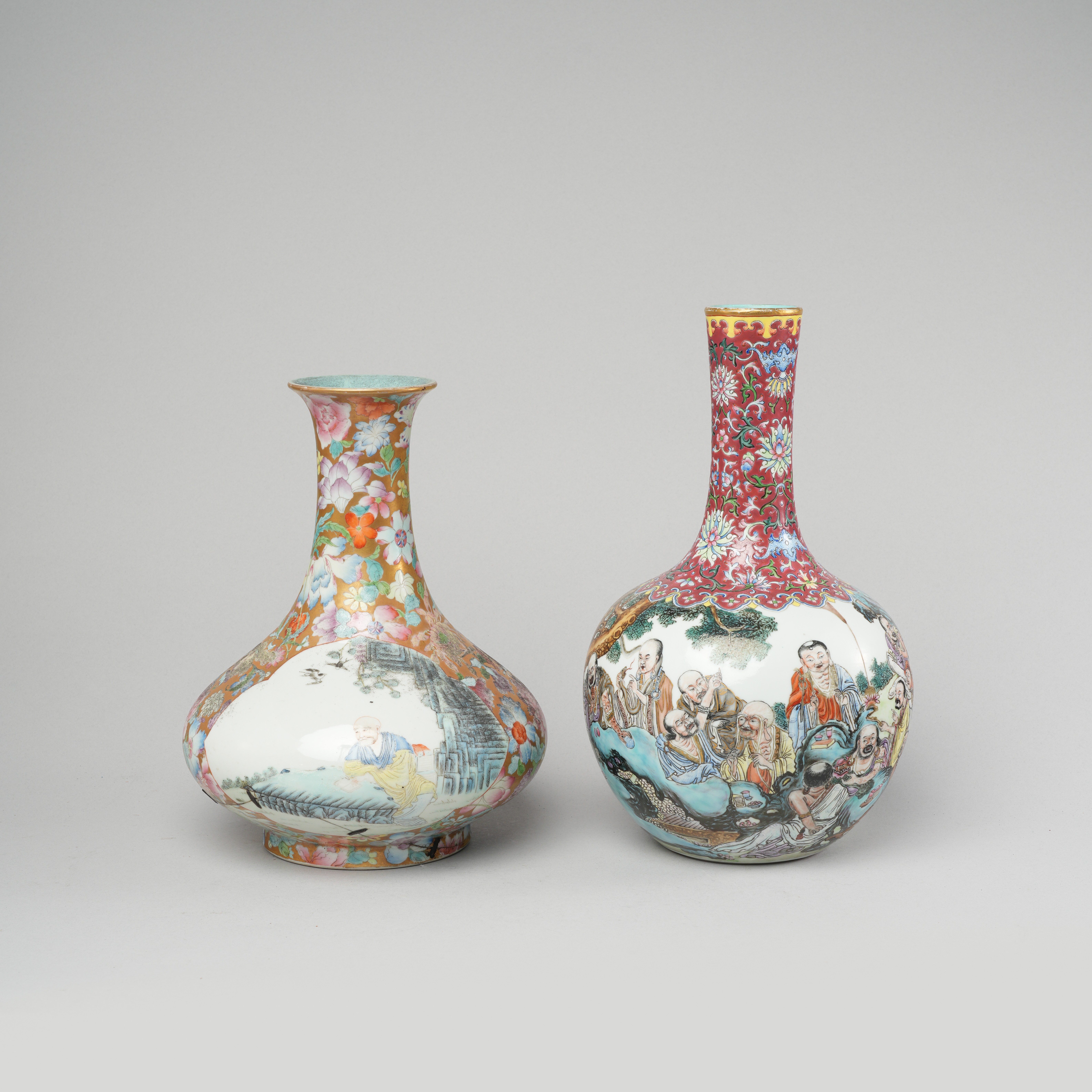 TWO CHINESE FAMILLE ROSE 'FIGURAL' VASES