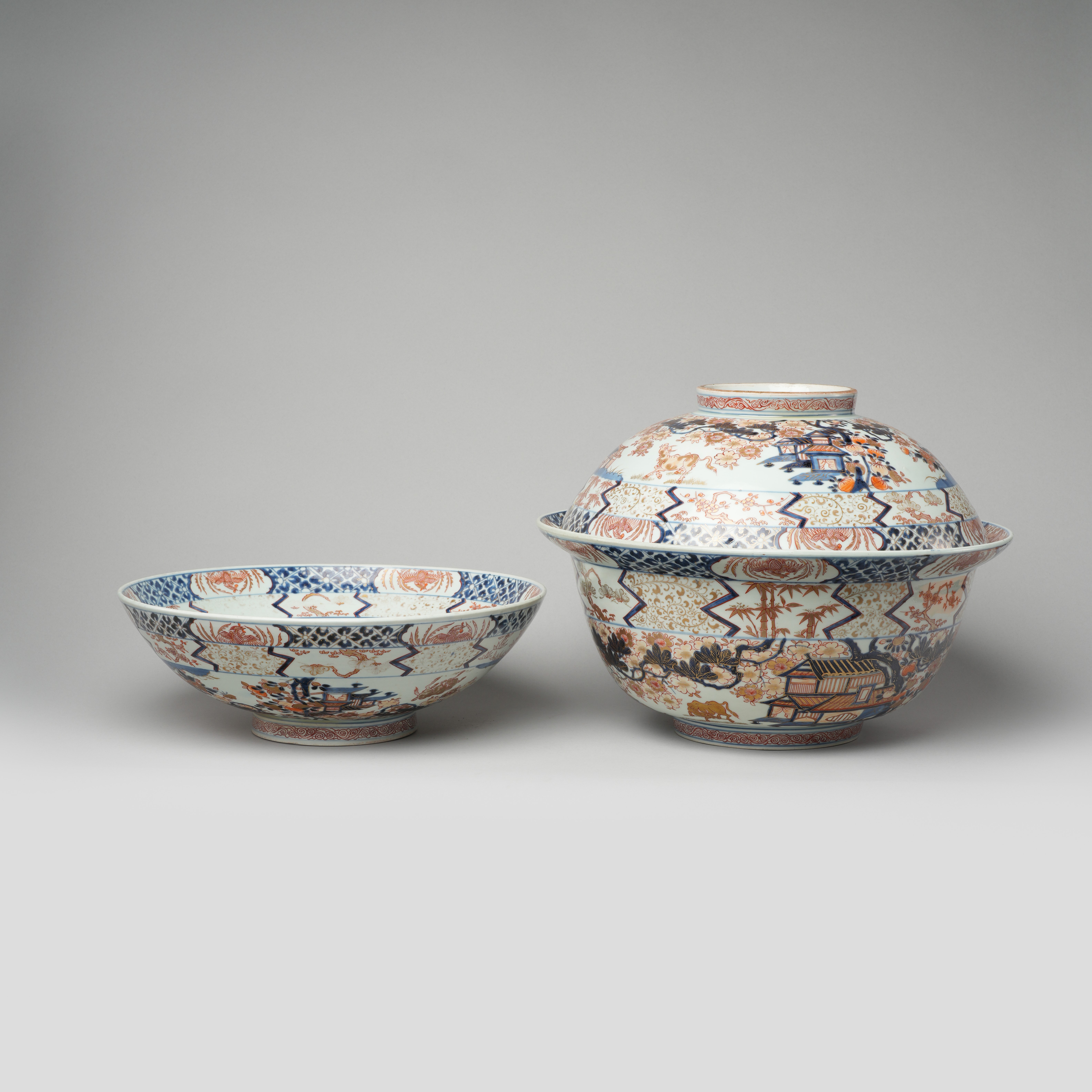 Cf. C J A Jörg, Fine & Curious, Japanese Export Porcelain in Dutch Collections, p.107, no.111 for another example of a large Imari covered bowl in Twickel Castle, Delden.
