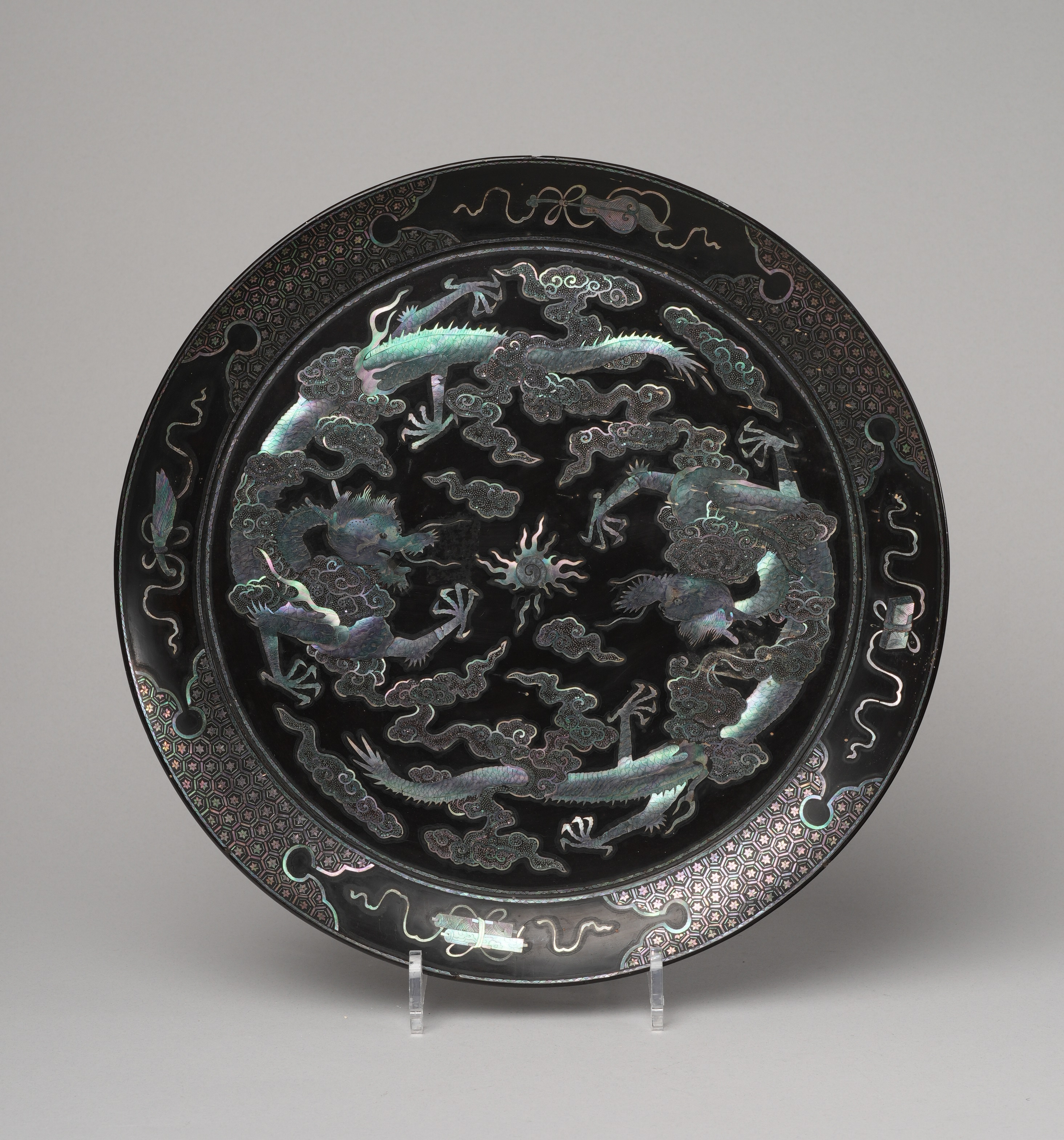 A RYUKYU ISLANDS MOTHER OF PEARL-INLAID LACQUER DISH
