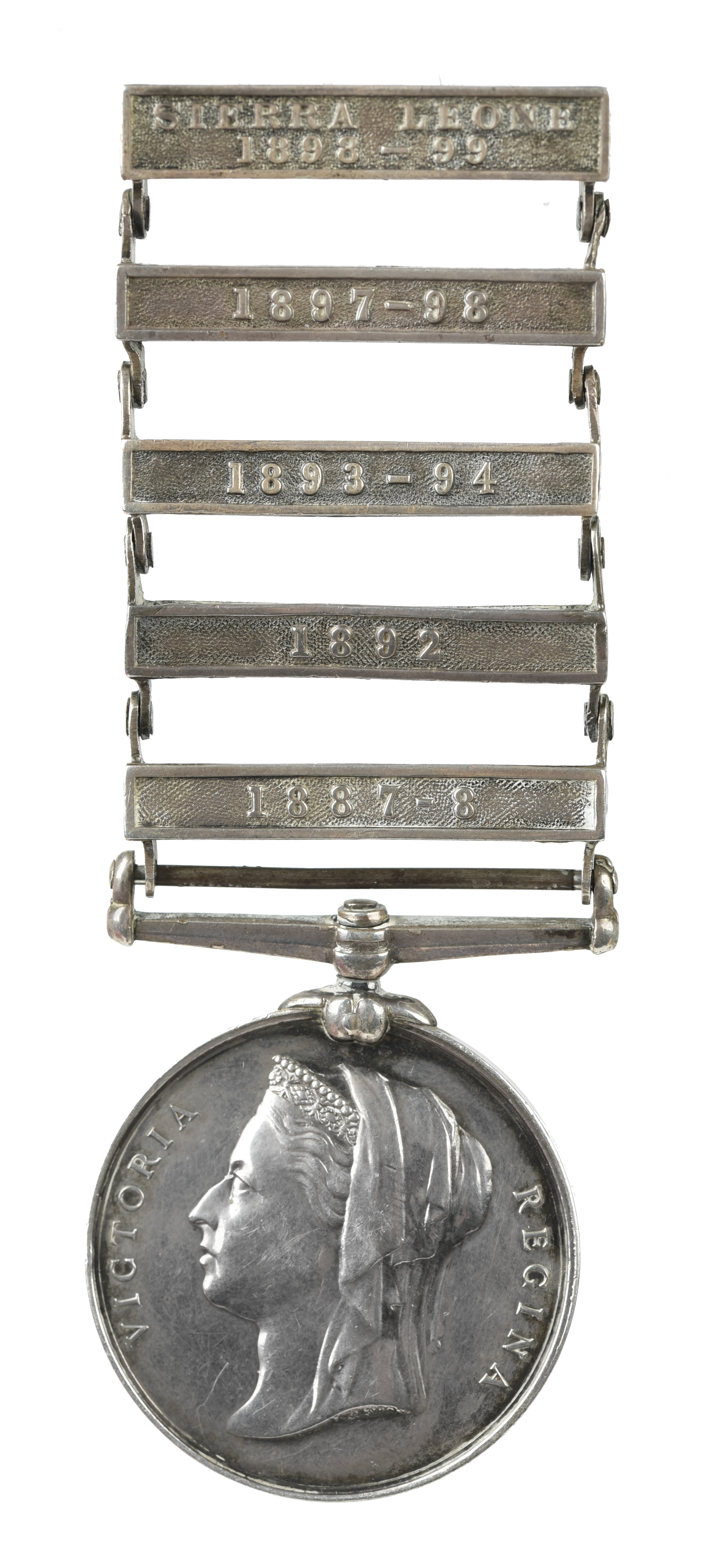 An East and West Africa Medal 1887-1900 to Private J. Osborne, 1st Battalion West India Regiment, 5 clasps: 1887-8, 1892, 1893-94, 1897-98, Sierra Leone 1898-99 (2808. PTE. J. OSBORNE. 1/W.I.RGT.), engraved in serif capitals, lacks ribbon, good very fine or better.
