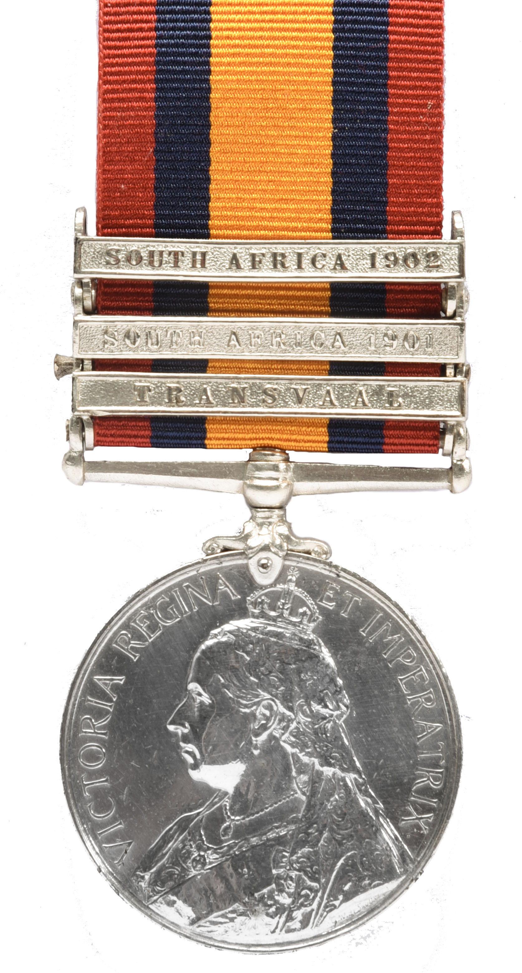 A Queen's South Africa Medal 1899-1902 to Private T. Newcombe, 1st Battalion Devonshire Regiment, second type reverse, 3 clasps: Transvaal, South Africa 1901, South Africa 1902 (5439 PTE T. NEWCOMBE. DEVON: REGT), mounted in a glazed frame by Spink & Son Ltd., very fine.