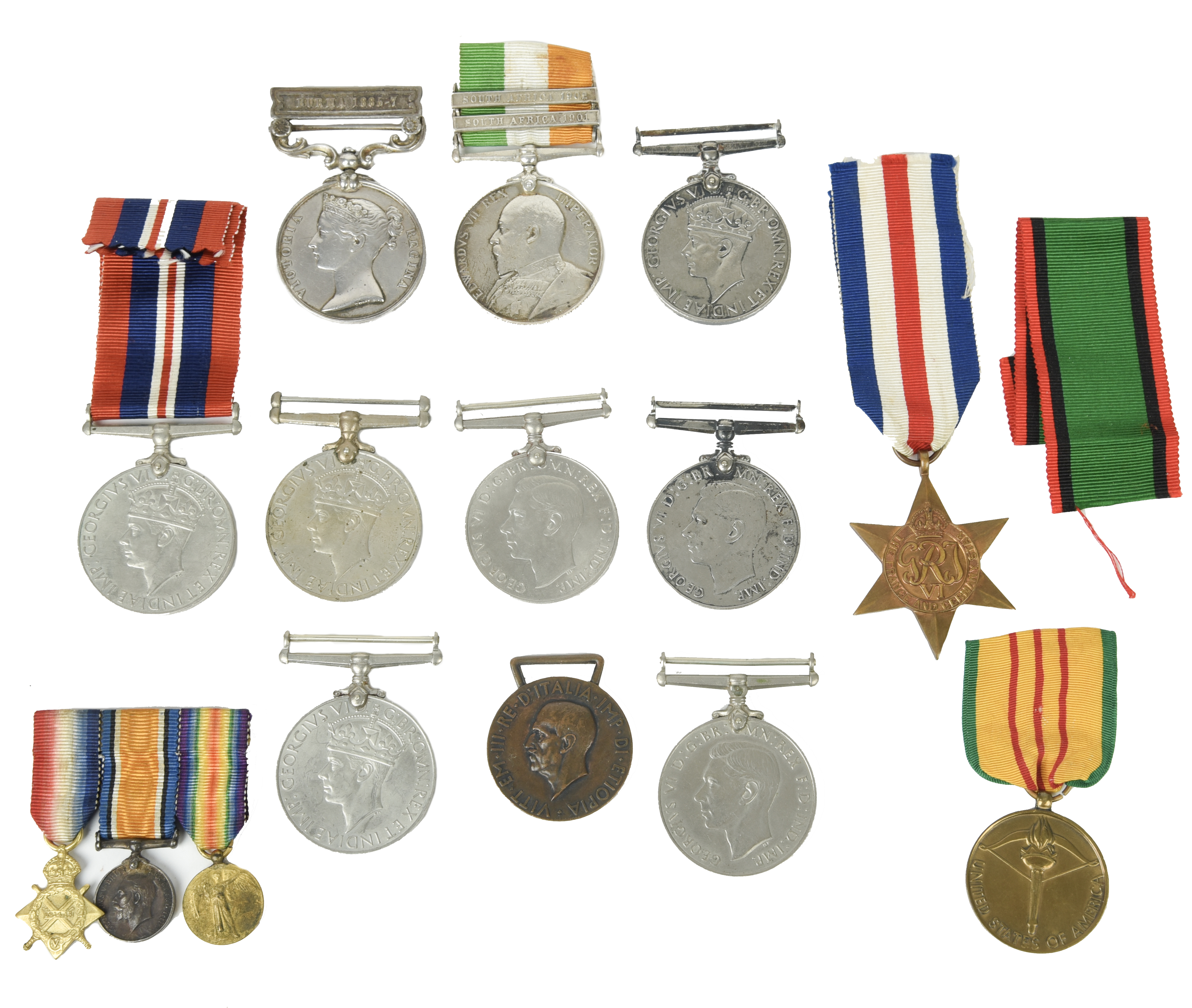 A small collection of medals, including: India General Service 1949-95, clasp: Burma 1885-7 (4792