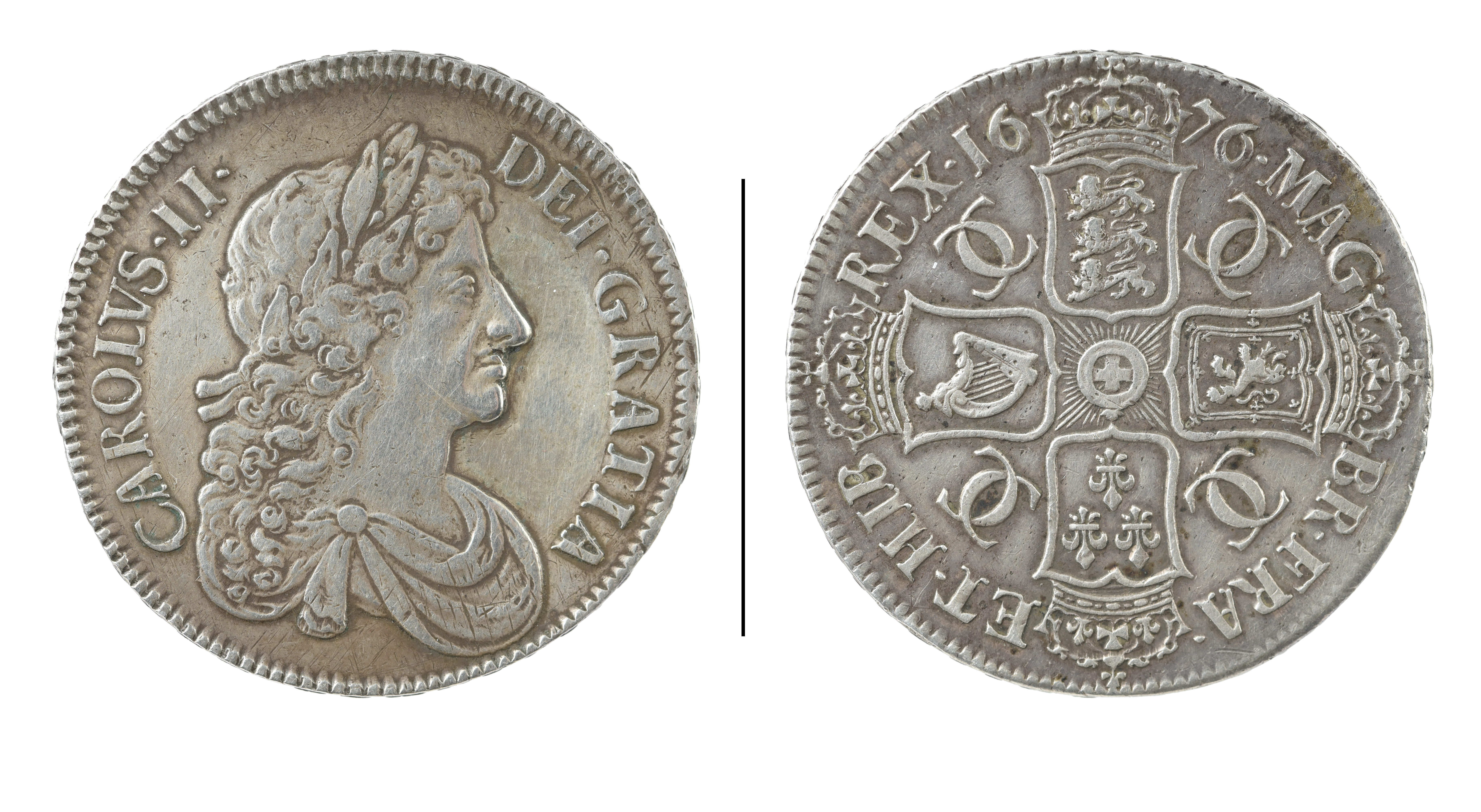 Charles II, silver crown, 1676, third bust, edge V. OCTAVO (S 3358), good very fine or better.