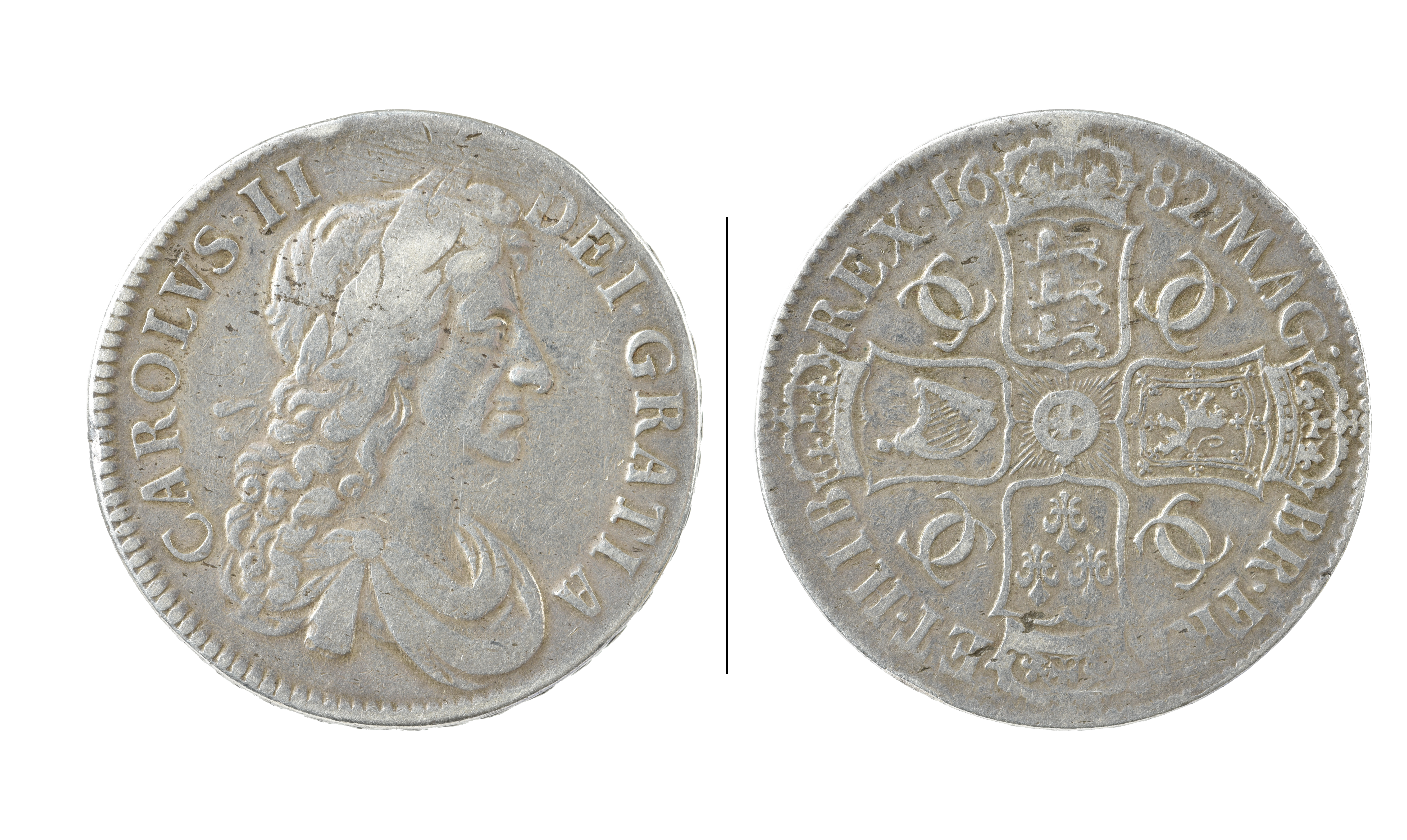 Charles II, silver crown, 1682, fourth bust, edge T. QUARTO (S 3359), near very fine.