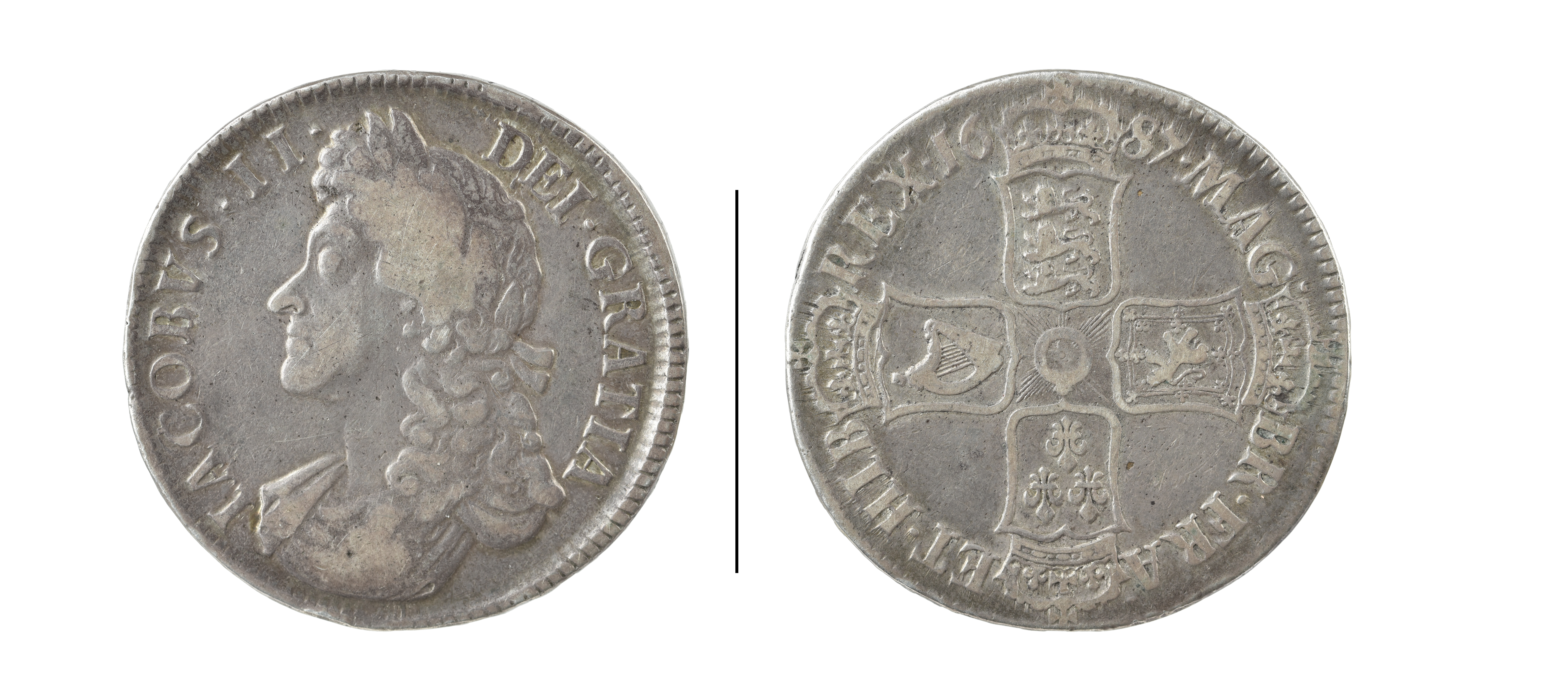 James II, silver crown, 1687, second bust (S 3407), good fine.