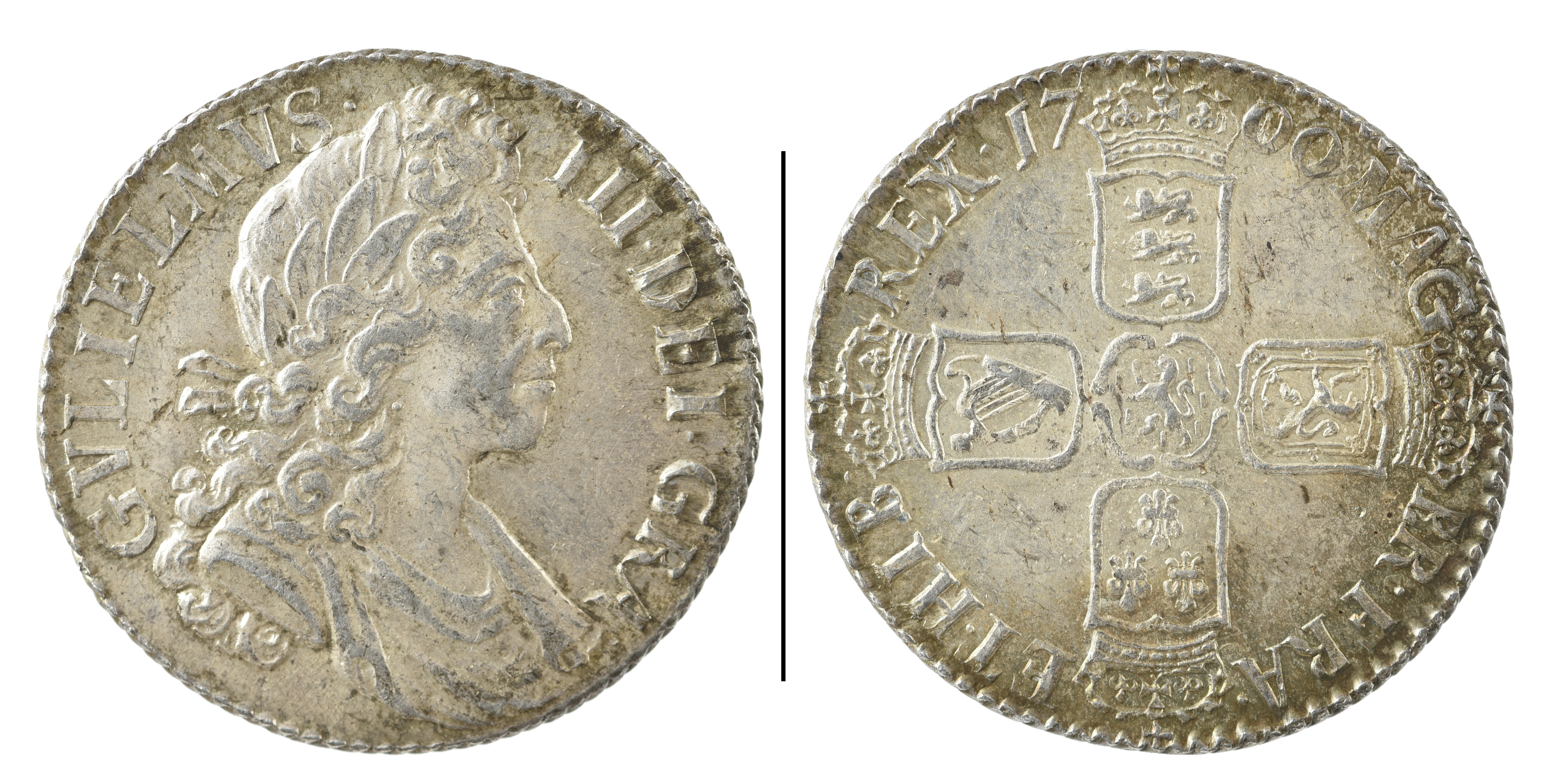 William III, silver shilling, 1700, fifth bust (S 3516), nearly extremely fine.