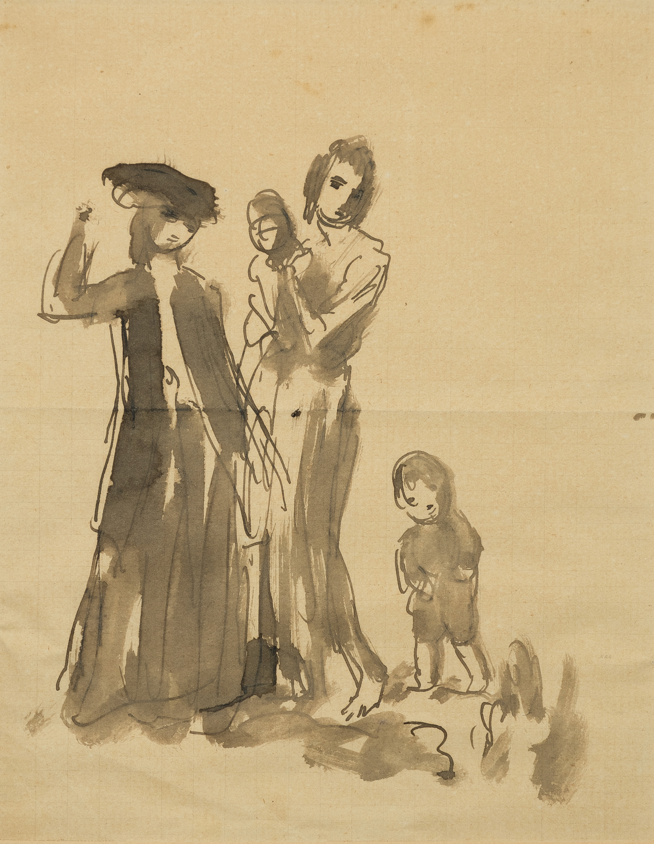 This work dates to c.1905, one of several similar studies Augustus John made with a larger composition in mind. For similar studies in pen and ink see John Rothenstein, Augustus John (Oxford, Phaidon Press, 1945), no.70; and David Fraser Jenkins, Augustus John: Studies for Compositions (National Museum of Wales, 1978), no.82. We are grateful to Rebecca John for her assistance cataloguing the present work.