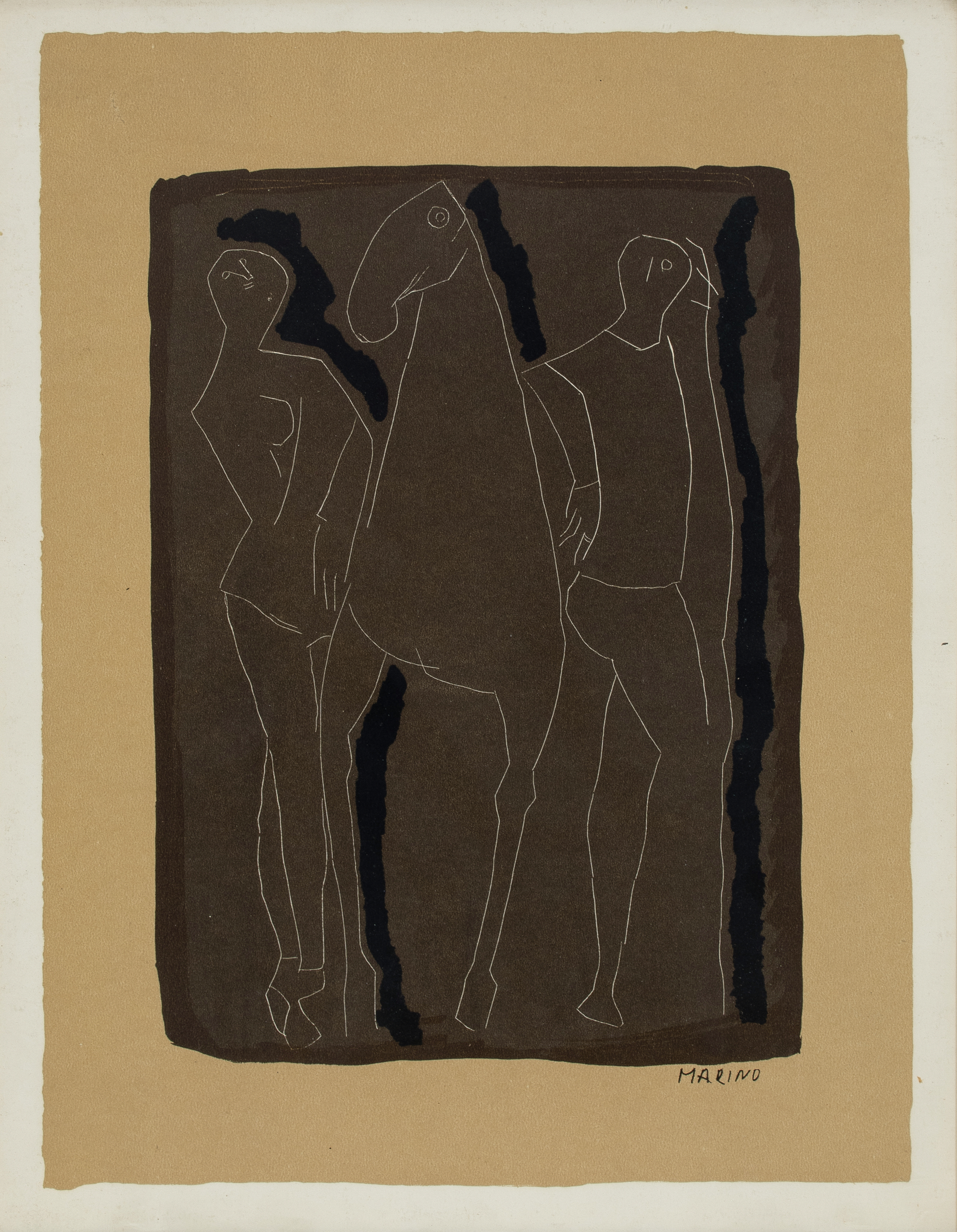 Two figures and a horse