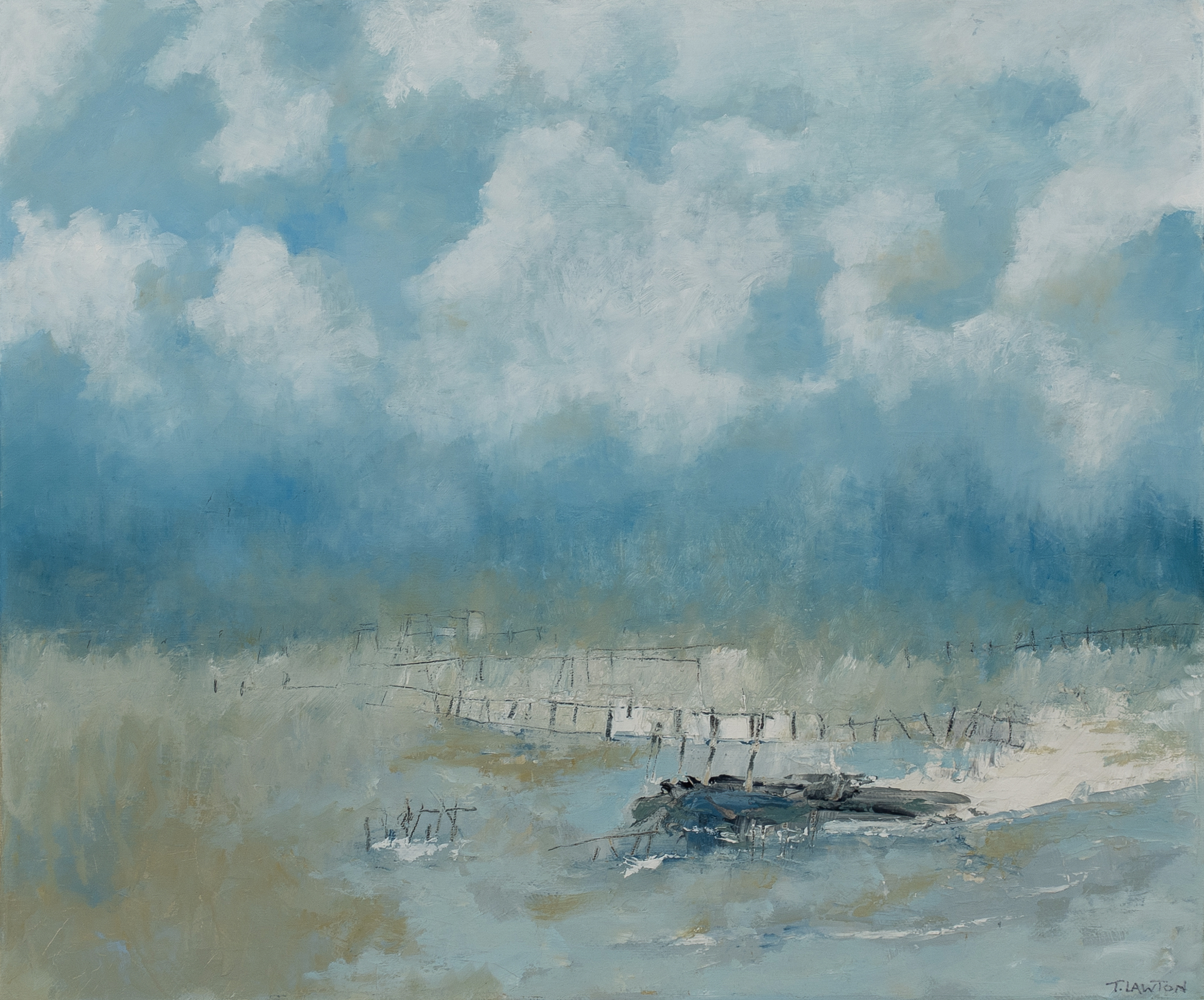 Signed T LAWTON (lower right), and further signed and inscribed 'Fluffy White Clouds'/Teresa Lawton (to backing board)