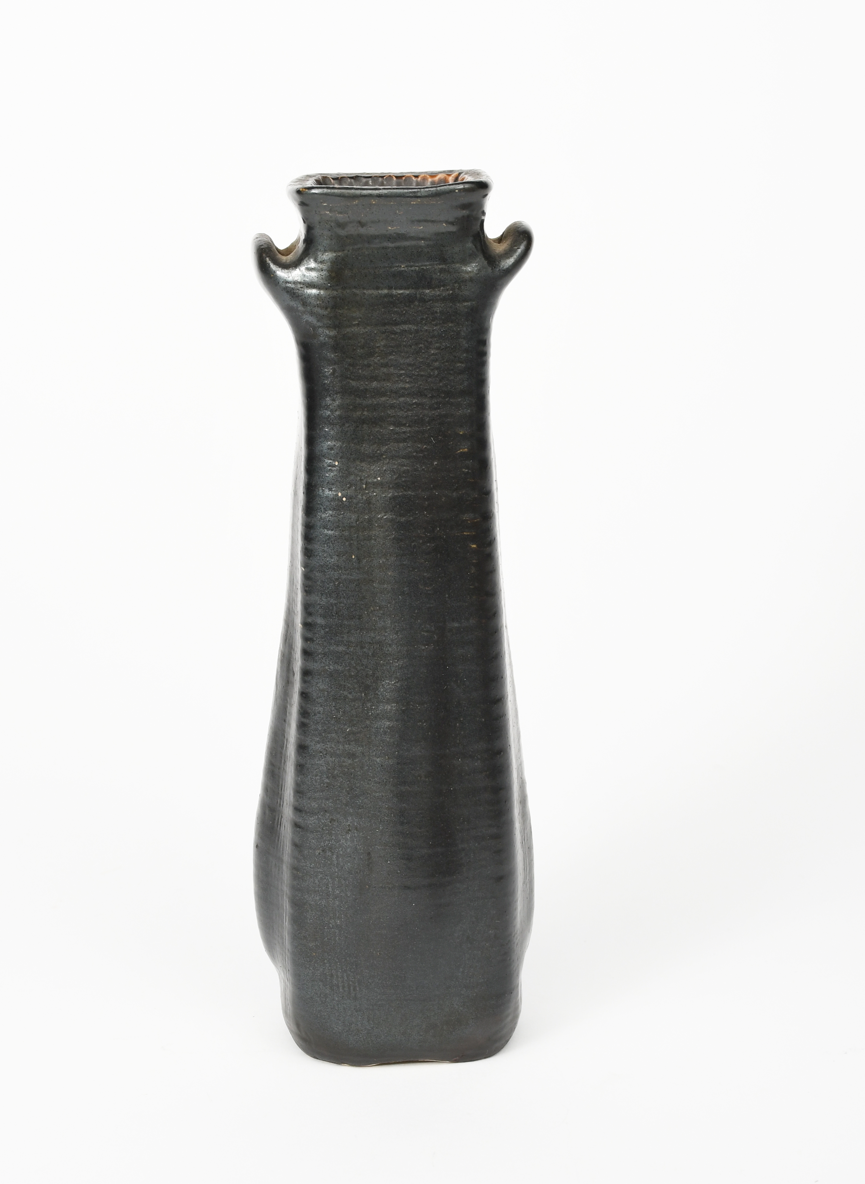 A Martin Brothers stoneware gourd vase by Edwin and Walter Martin, dated 1907, slender form with applied handles, covered in a black metallic glaze, incised 6-1907 Martin Bros, London & Southall, 23cm. high