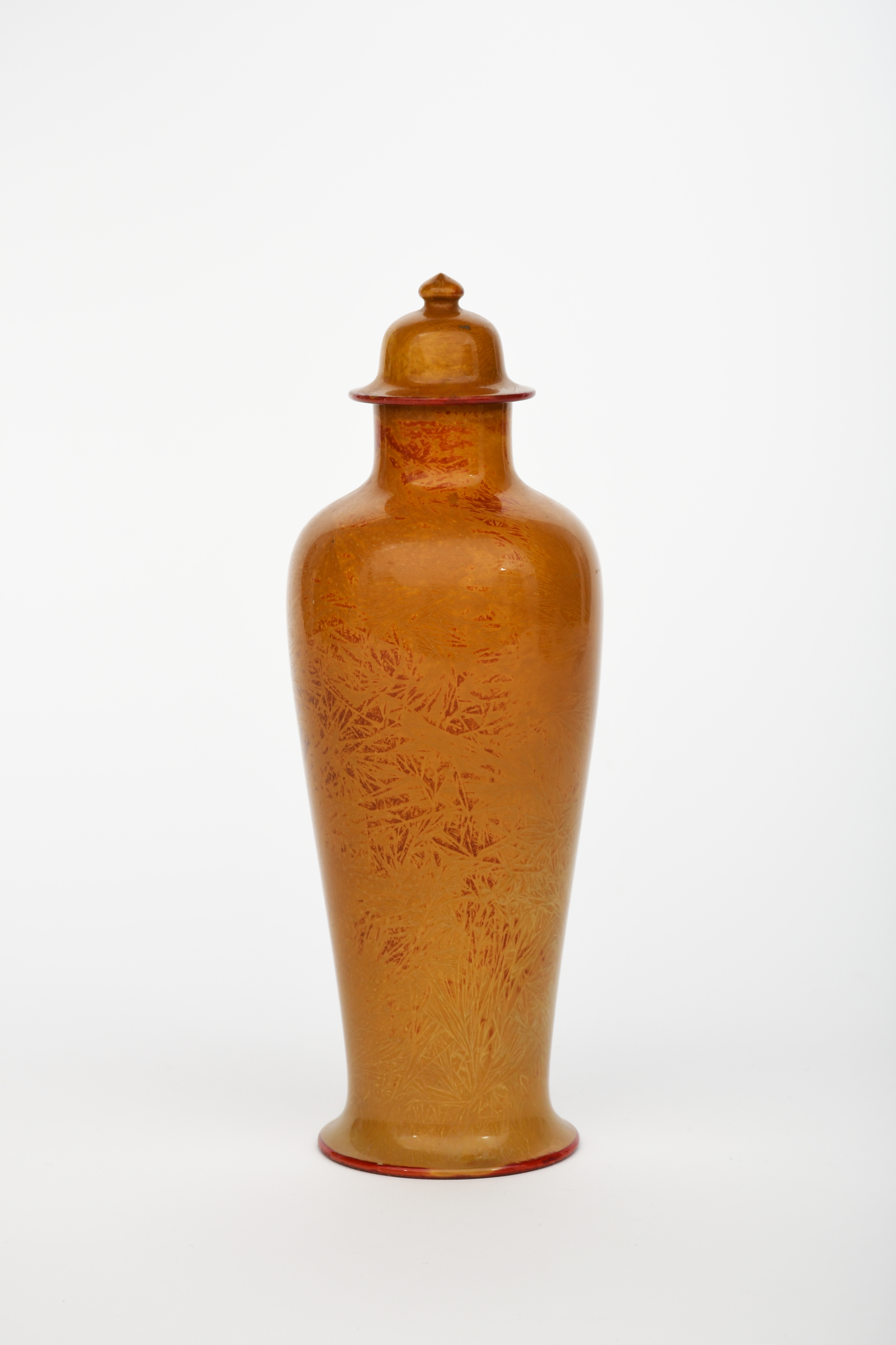 A Bernard Moore vase and cover, slender baluster form, covered in a flambe glaze under crystalline