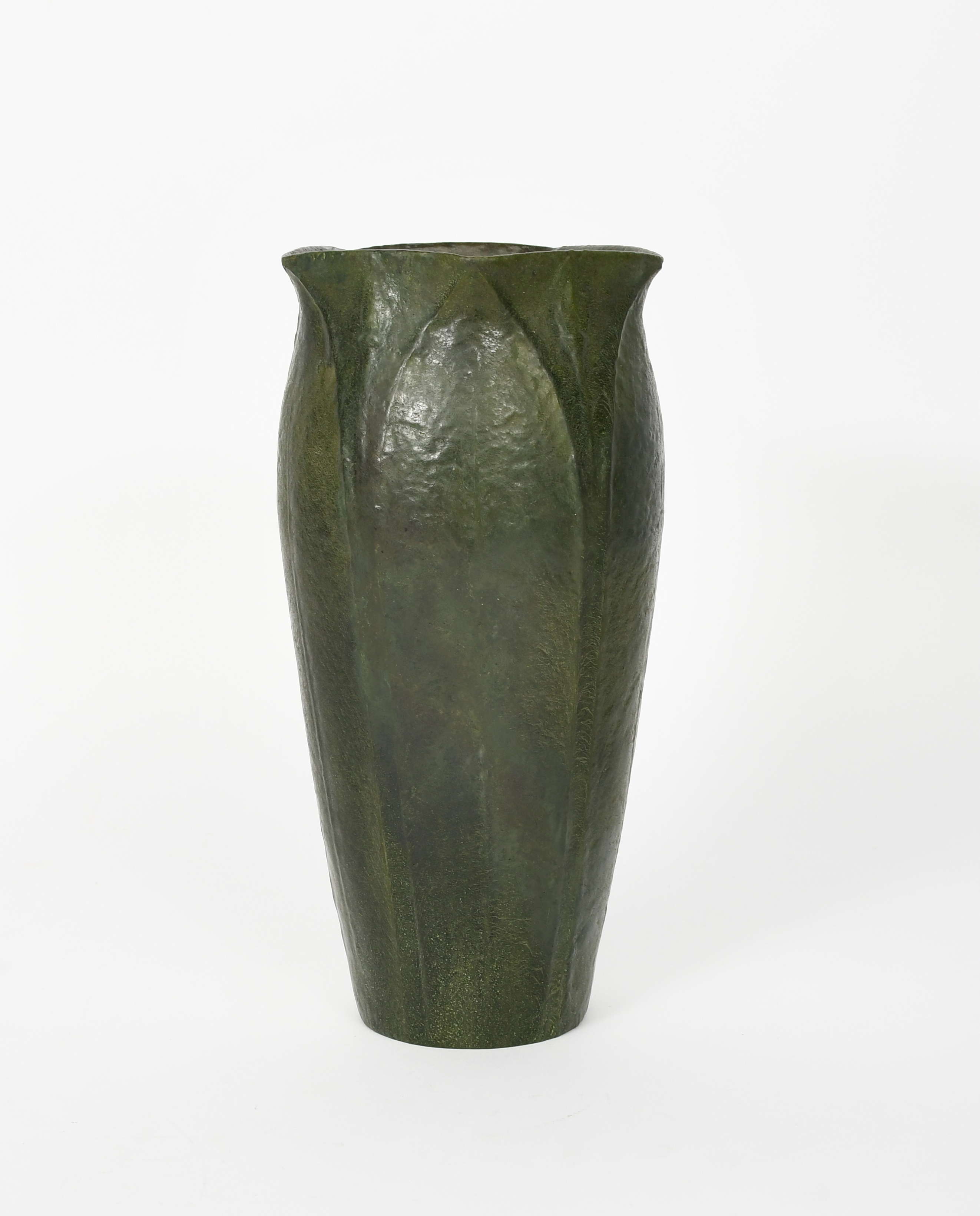 A Grueby Pottery vase, shouldered form, modelled in low relief with foliate design, glazed matt