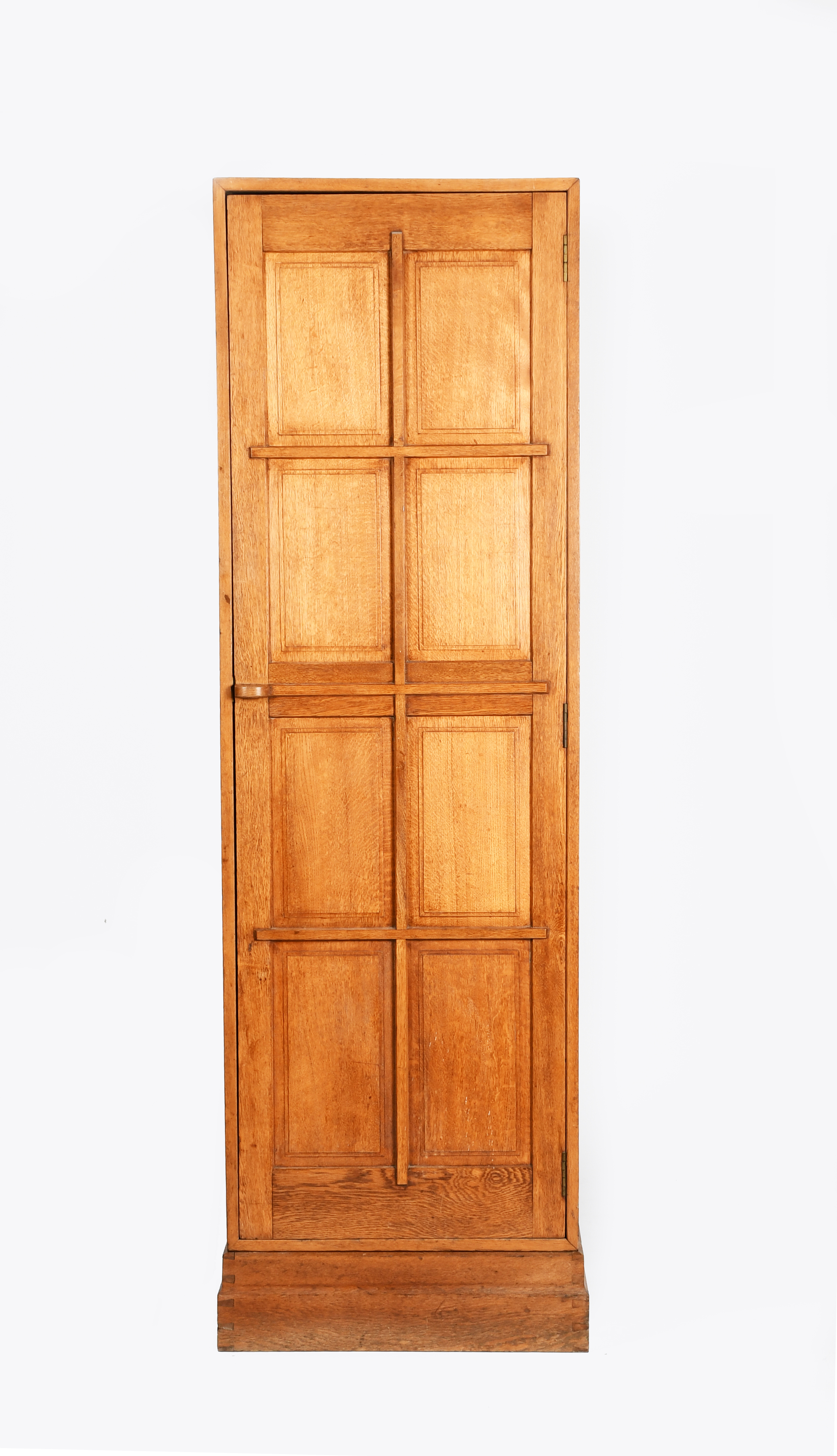 A light oak tall wardrobe the design attributed to Peter Waals, rectangular panelled, hinged door, on plinth unsigned, stamped 82, 203cm high, 61cm wide, 55.5cm deep (2)