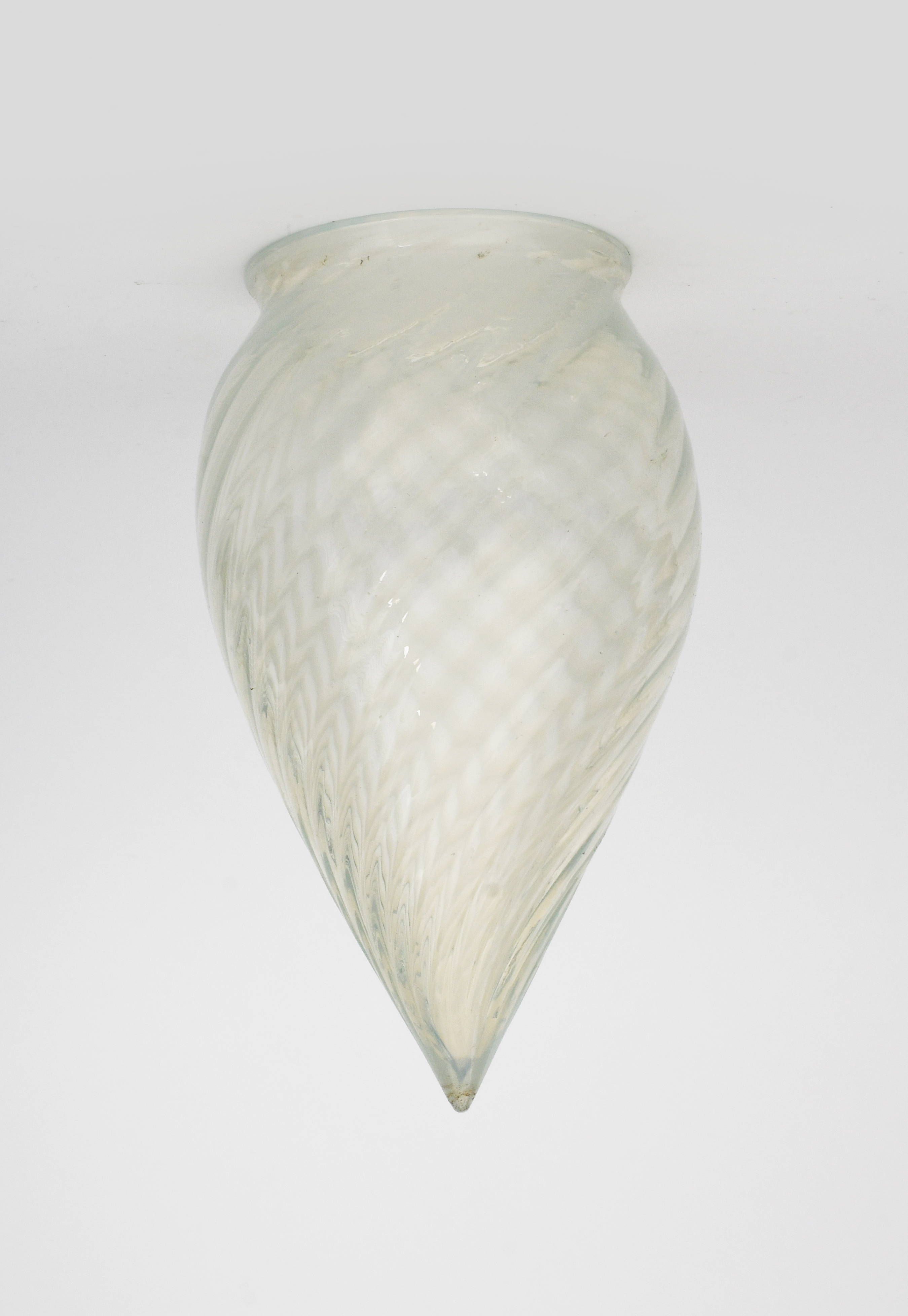 A large Vaseline glass teardrop shade, internally decorated with stripes, unsigned, 22.5cm. high