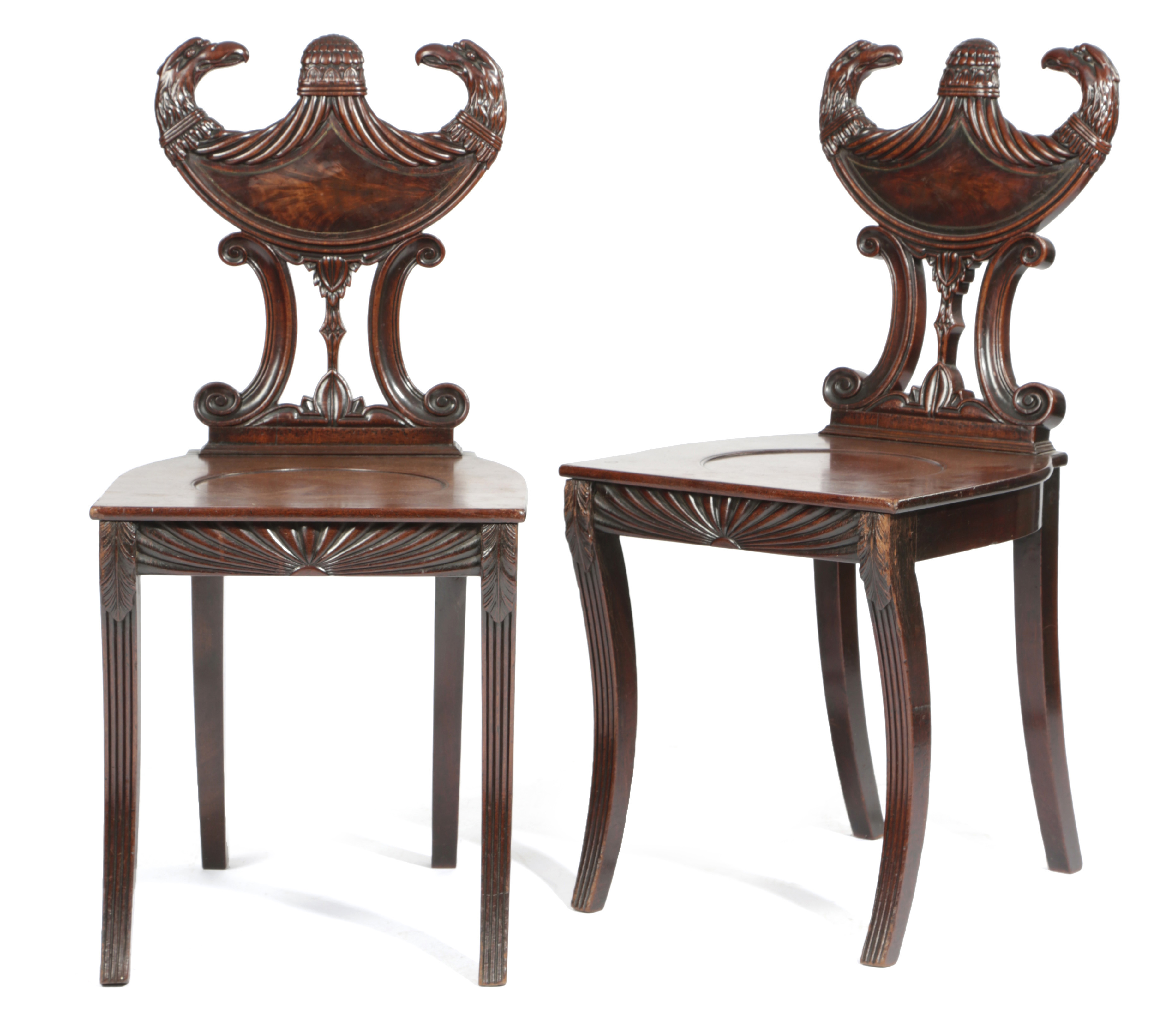 A FINE PAIR OF REGENCY MAHOGANY HALL CHAIRS