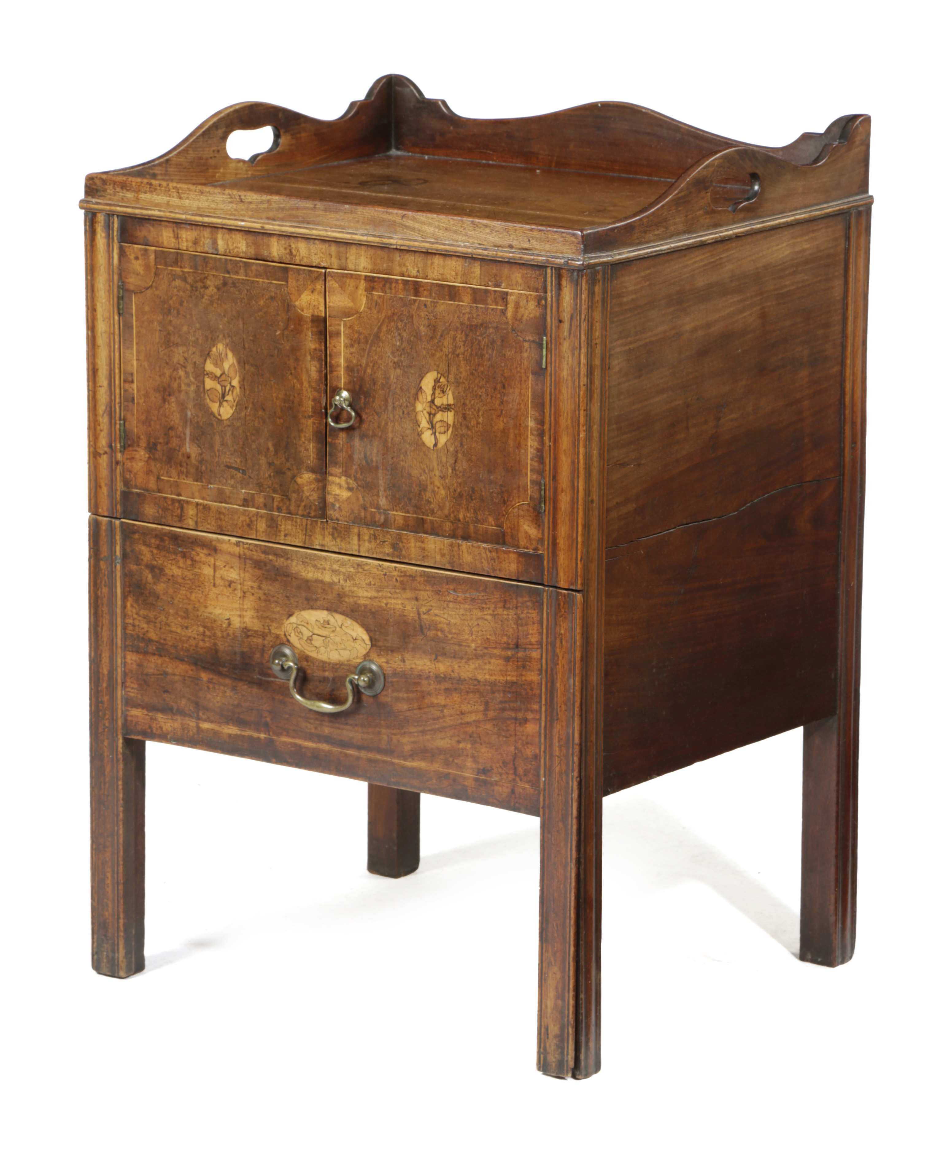 A GEORGE III MAHOGANY TRAY-TOP BEDSIDE COMMODE