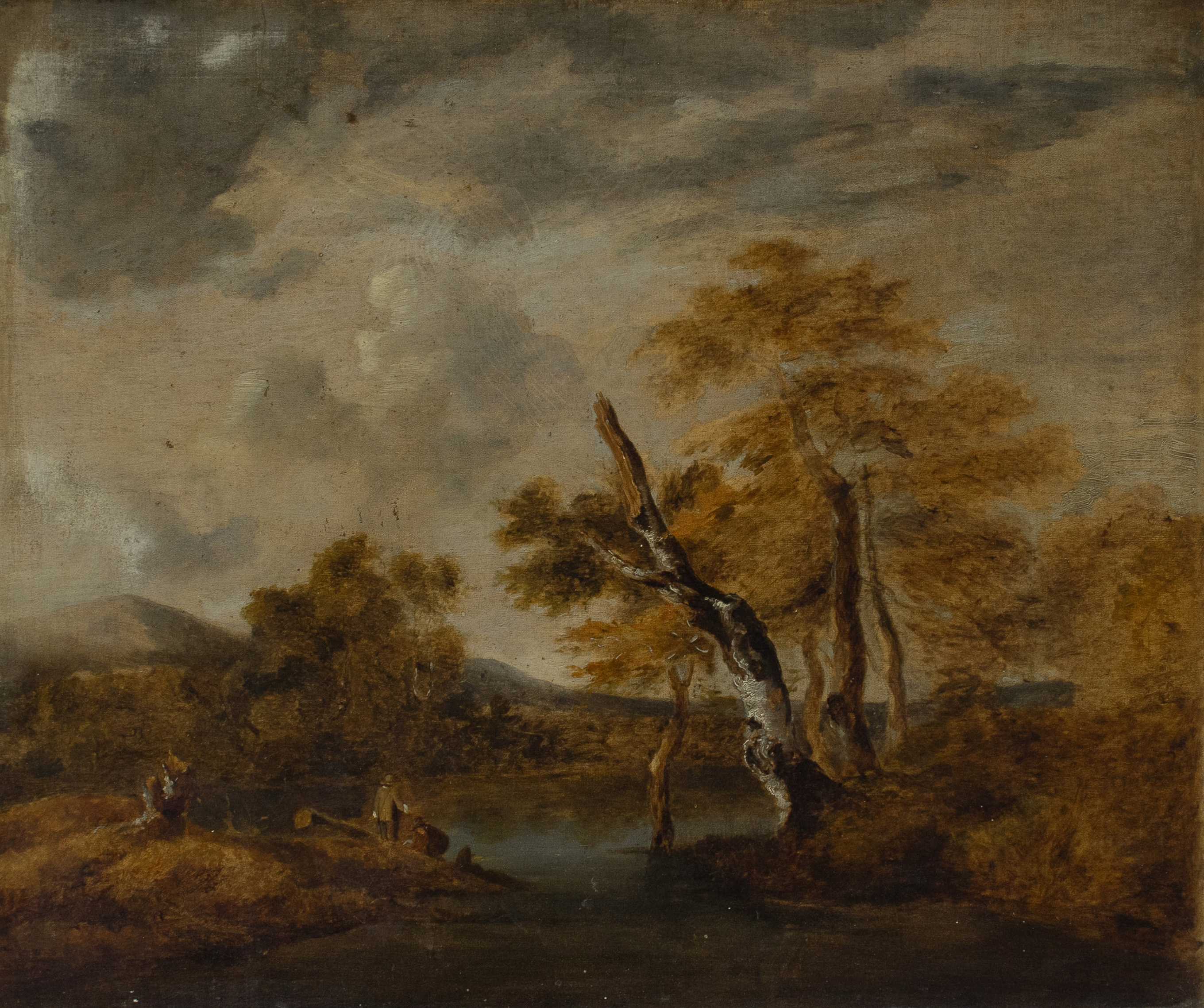 River landscape with figures on a bank