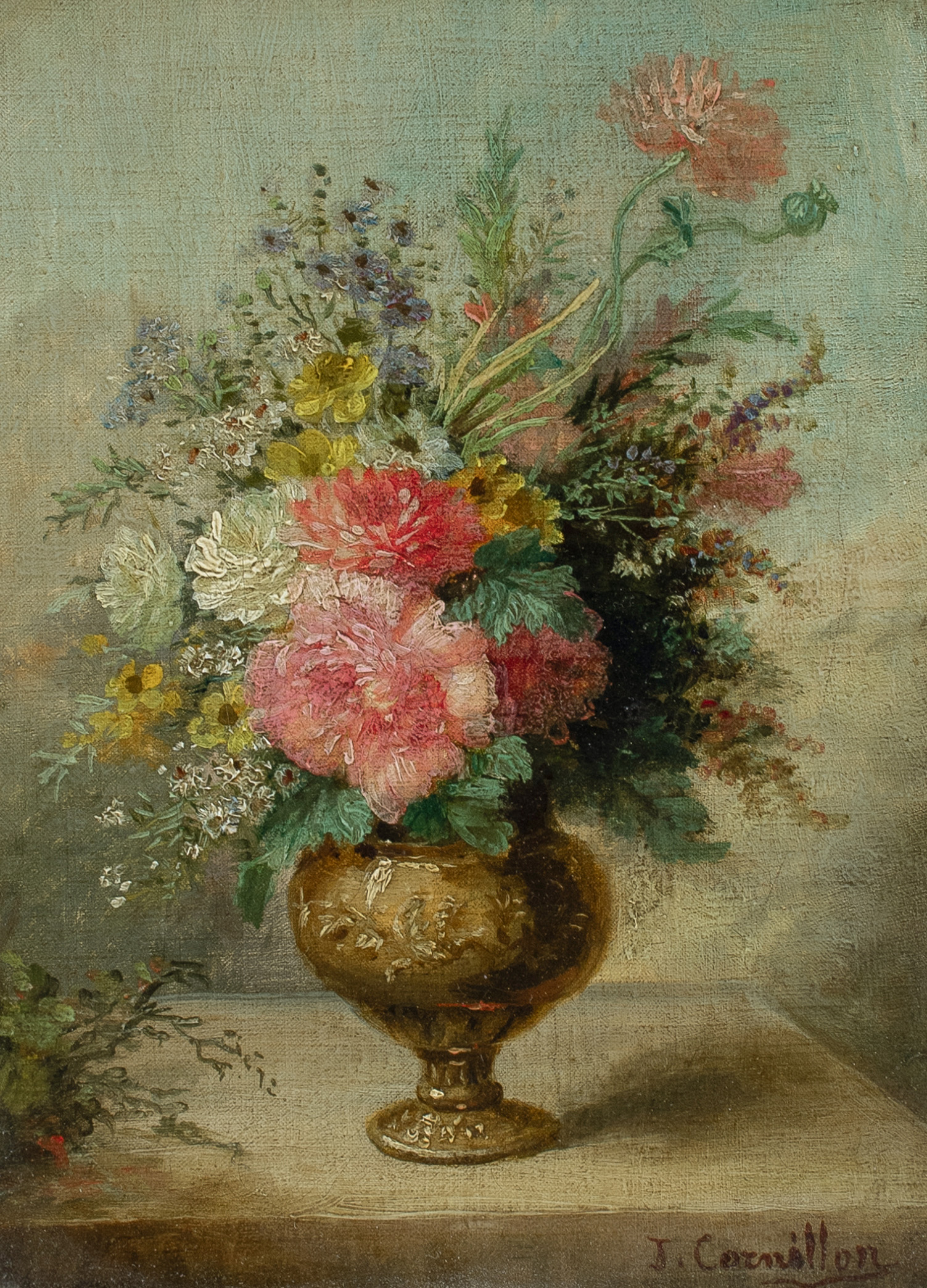 Still life with flowers in a vase, signed J.Cornillon (lower right)