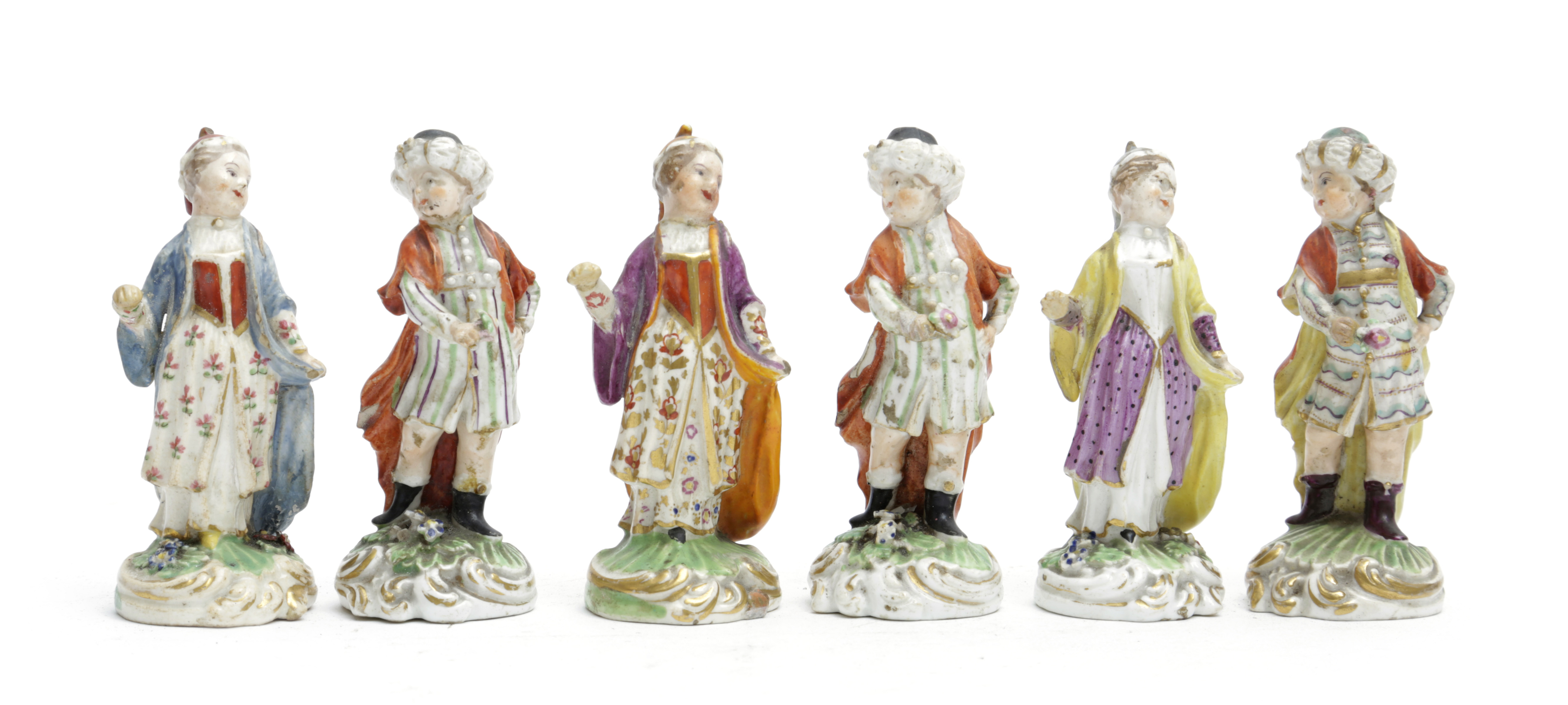 each modelled as a boy and girl in Turk’s outfits, incised marks to the bases (6)