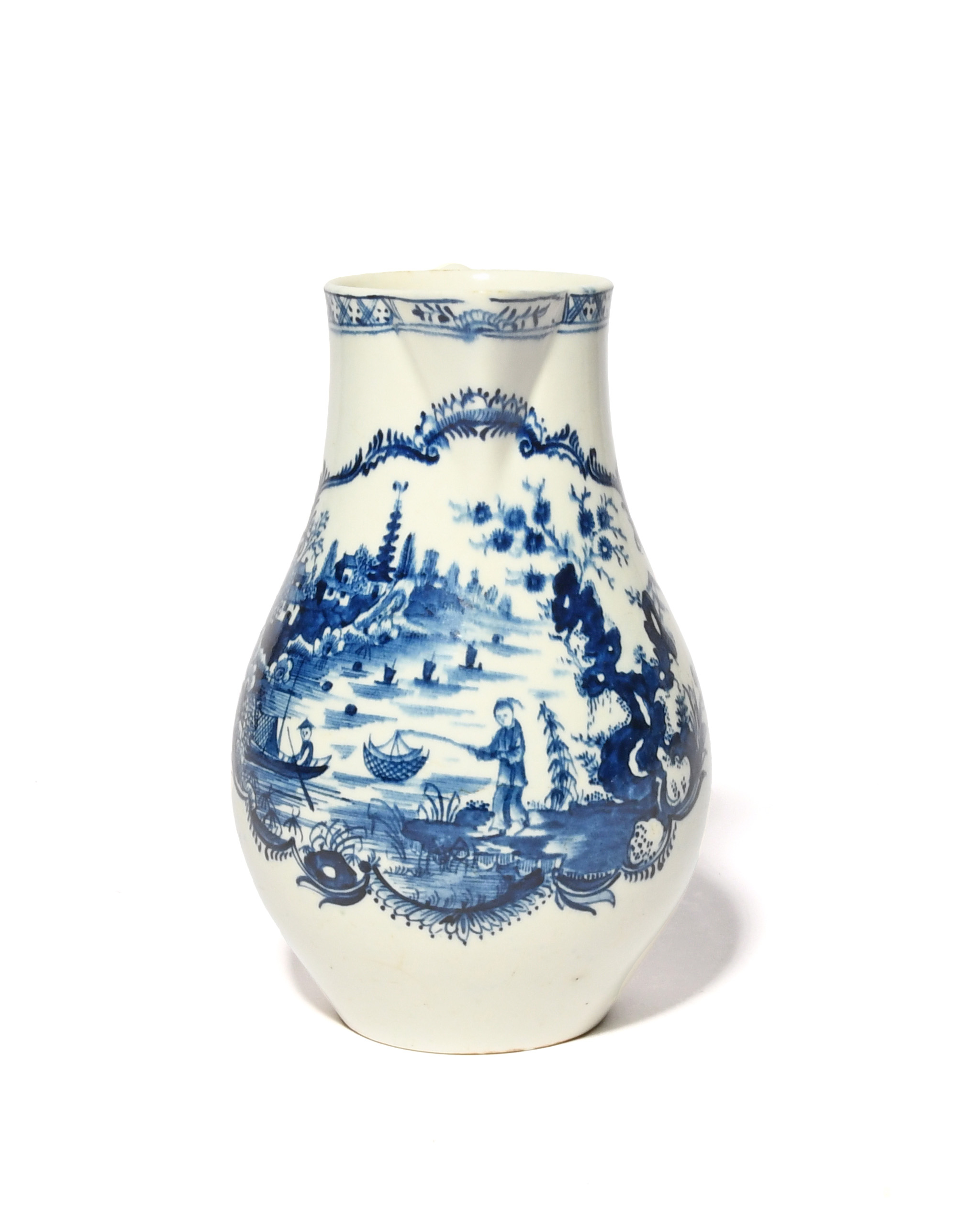 A RARE LOWESTOFT BLUE AND WHITE COFFEE JUG