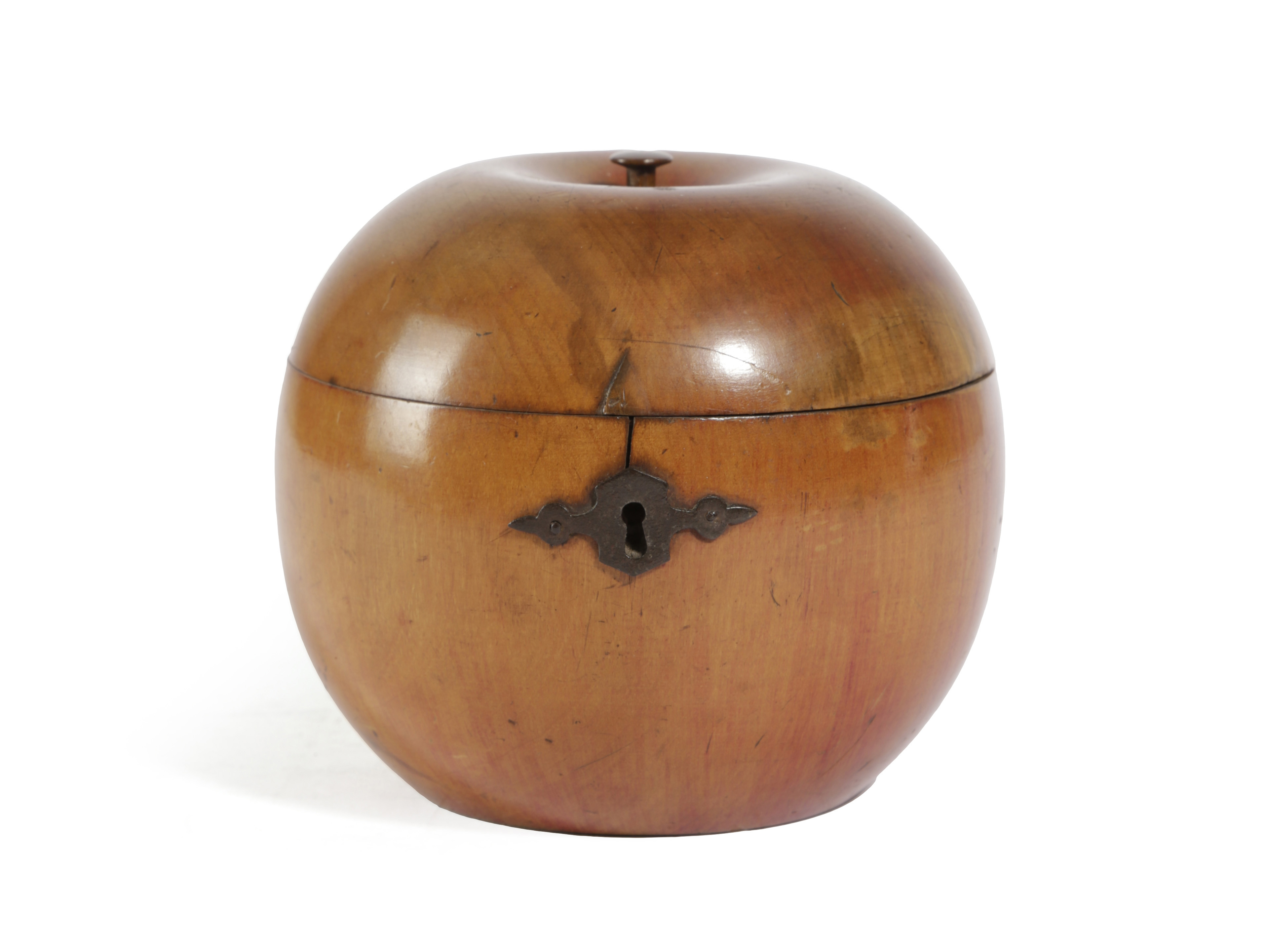 A TREEN FRUITWOOD TEA CADDY IN THE FORM OF AN APPLE