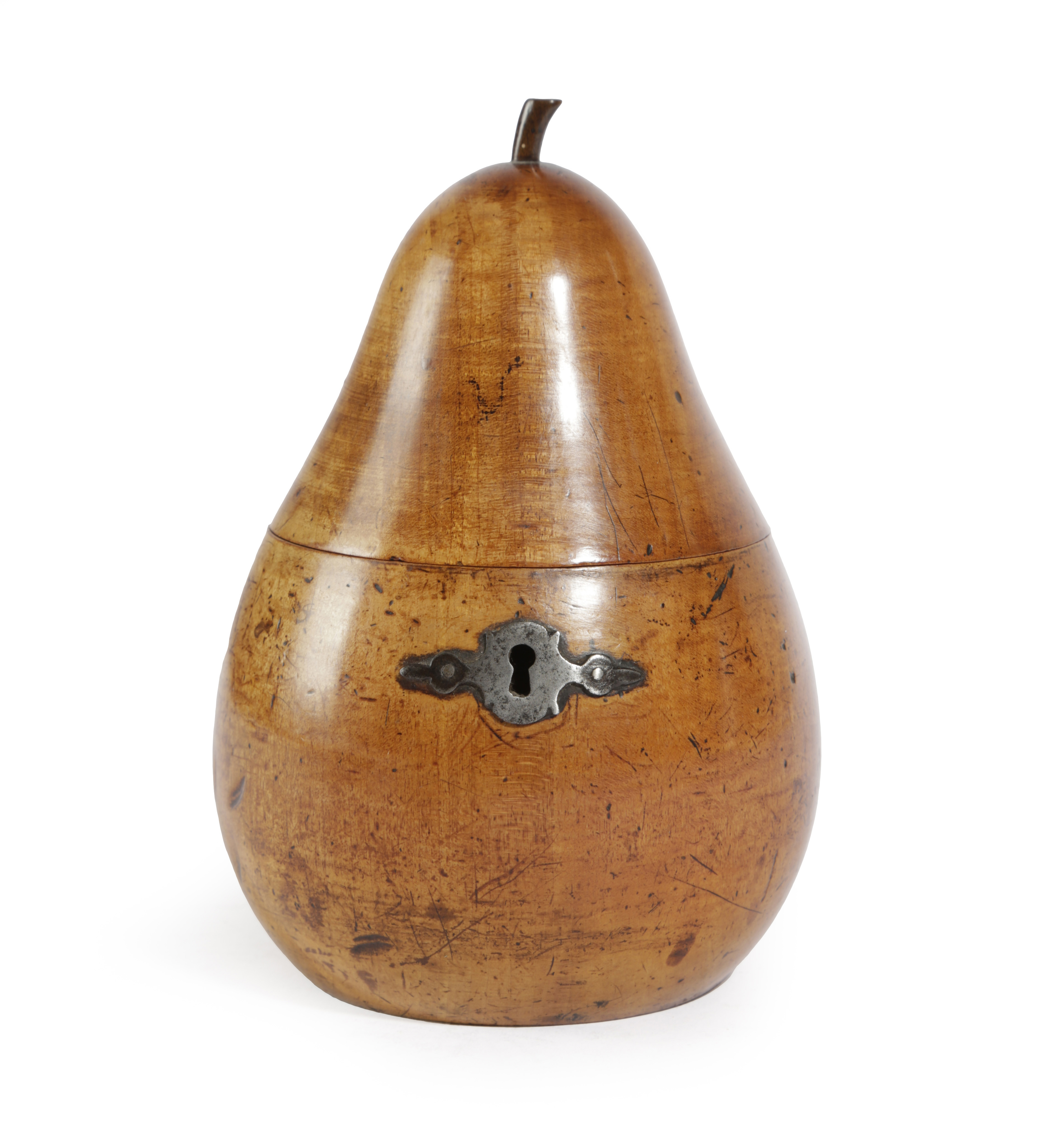 A TREEN FRUITWOOD TEA CADDY IN THE FORM OF A PEAR